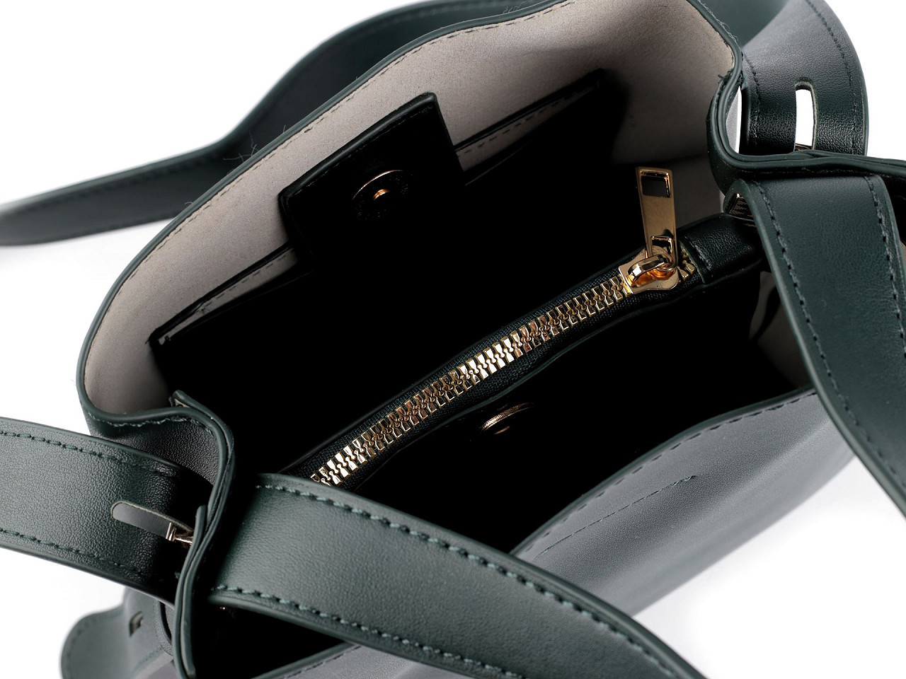 Vnitřní prostor má rozdělený na 2 kapsy s magnetickým zapínáním. Mezi nimi je přepážka, ve které je kapsa na zip. Uvnitř kabelky je i malá plochá kapsa. Součástí kabelky je ucho do ruky a odepínací nastavitelný popruh.