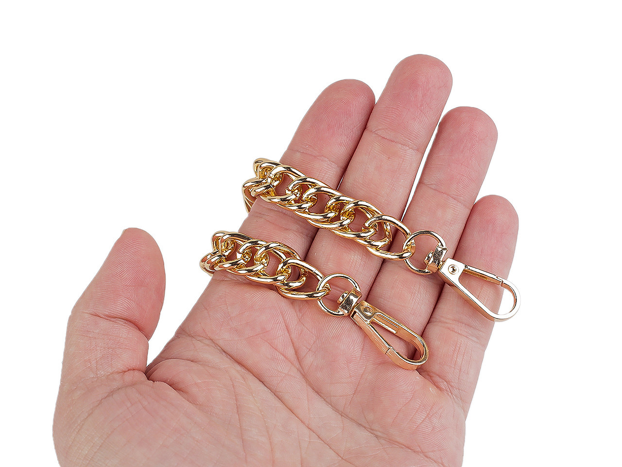 Krátký kovový řetízek vynikne jako stylové ucho na kabelce, psaníčku i třeba městském batohu. Na obou jeho koncích jsou připevněné karabinky.