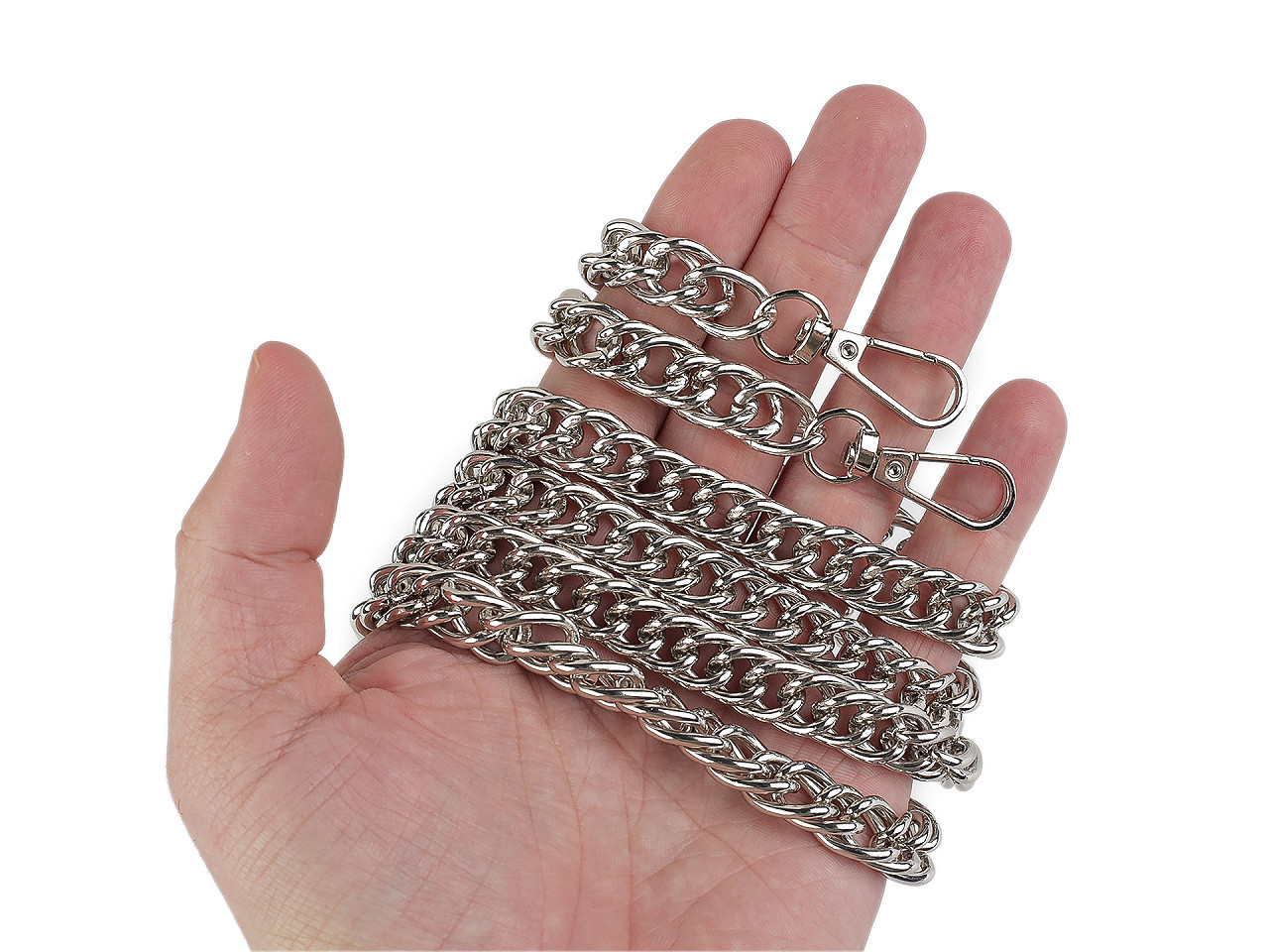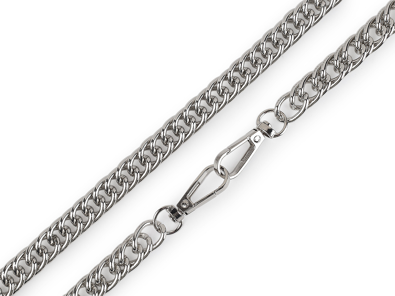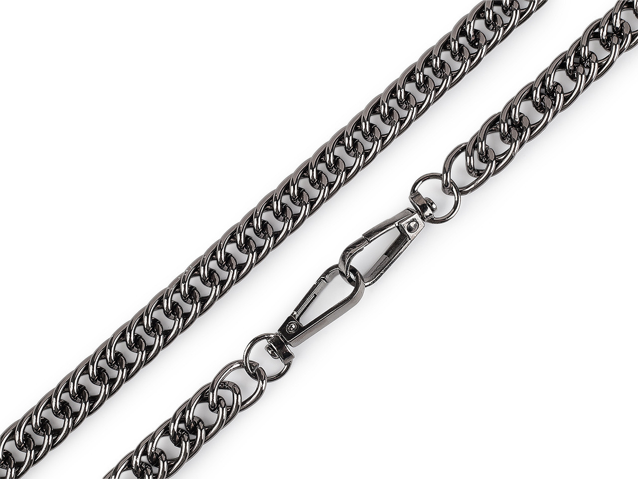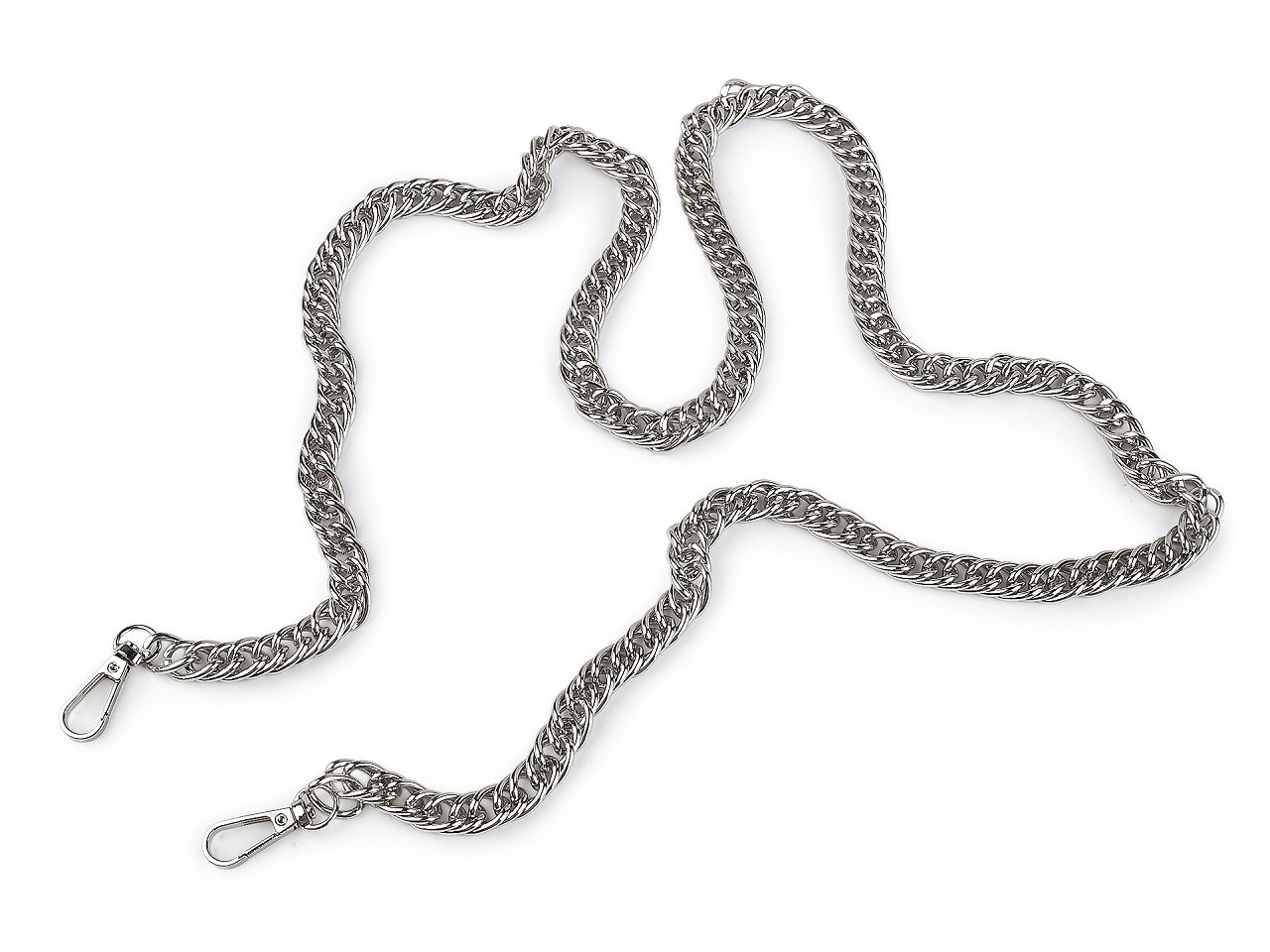 Kovový řetízek je vhodný na menší kabelky, psaníčka a pouzdra na mobilní telefony. Na obou jeho koncích najdete připevněné karabinky.
