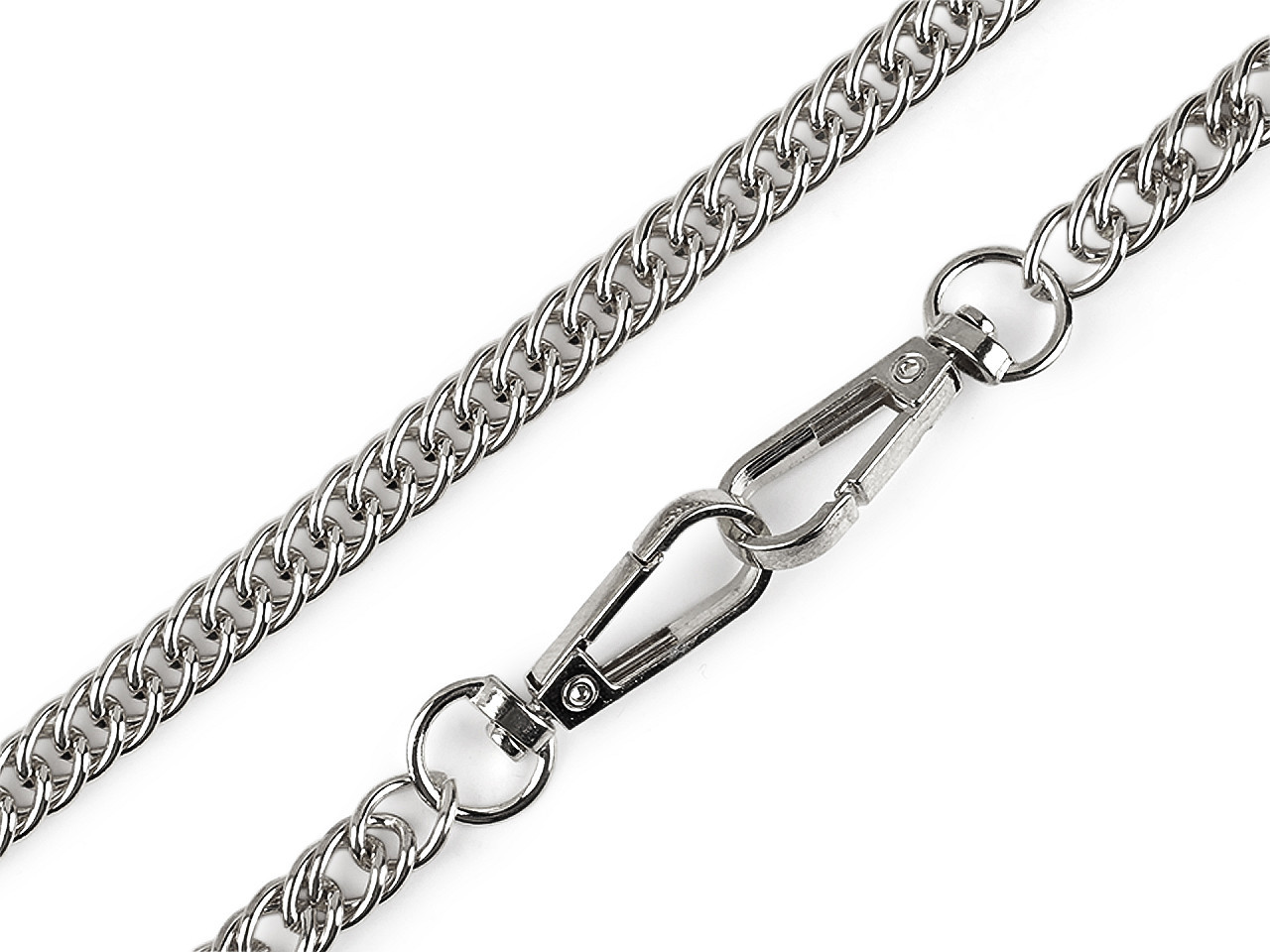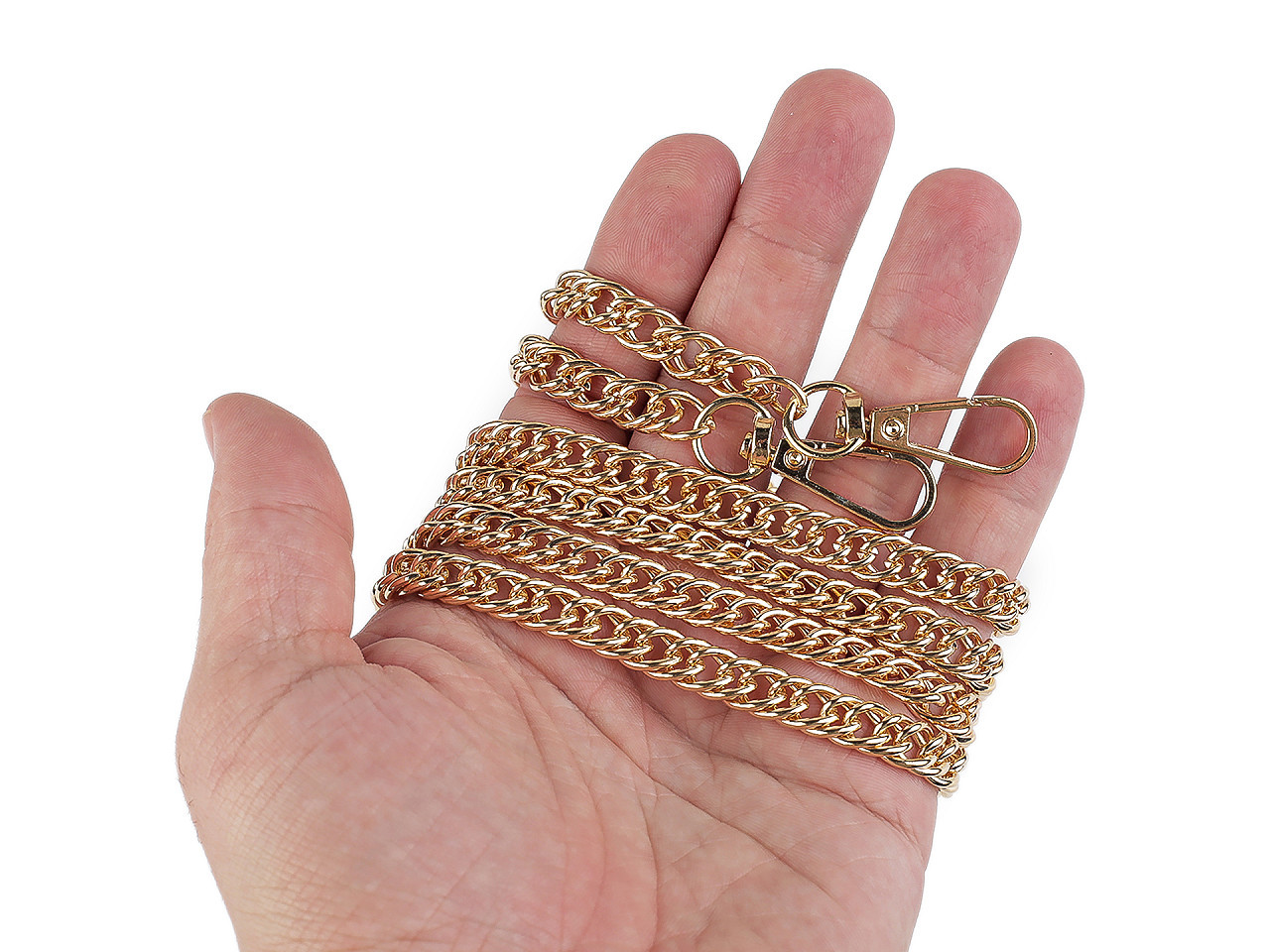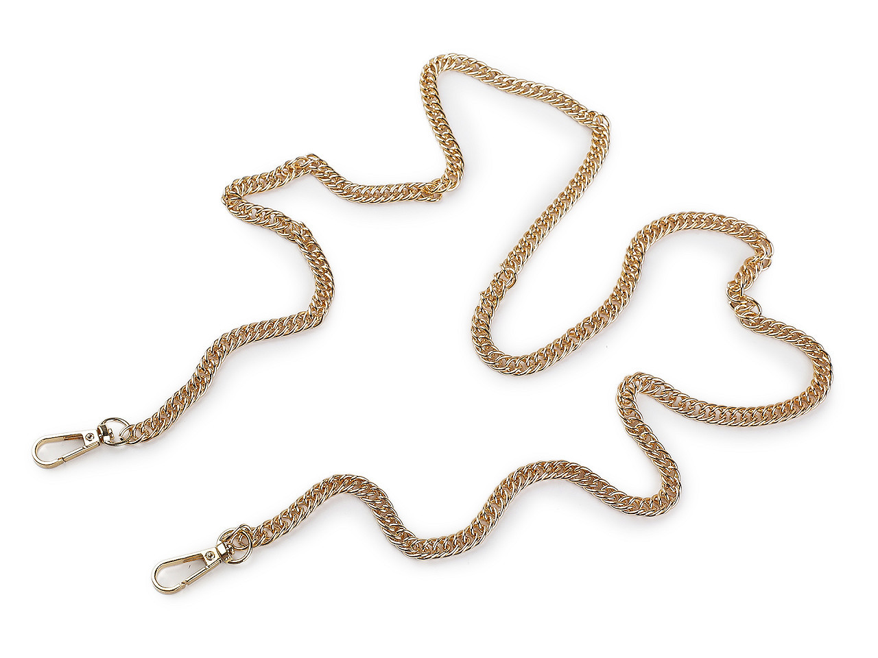 Kovový řetízek je vhodný na kabelky, tašky i psaníčka. Na obou jeho koncích najdete připevněné karabinky.