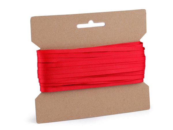 Kvalitní pevná stuha s hrubší rypsovou strukturou je jednostranná, zadní stranu má hladší. Stuha má jemný lesk.