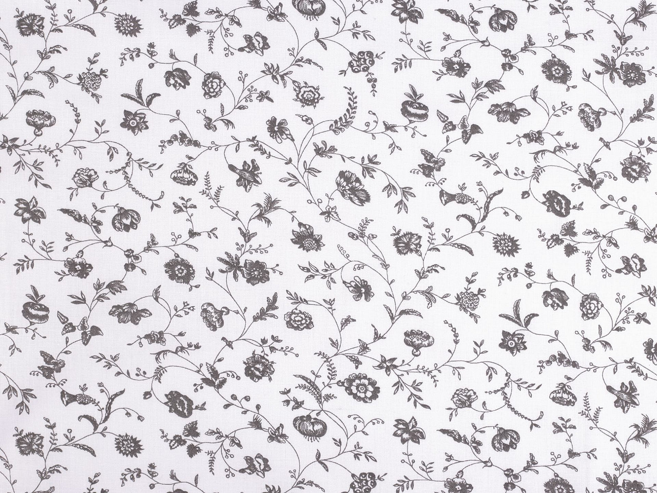 Bavlněnou látku s potiskem květin využijete na šití polštářů, povlečení, závěsů, ubrusů, tašek, pytlíků, zástěr apod.