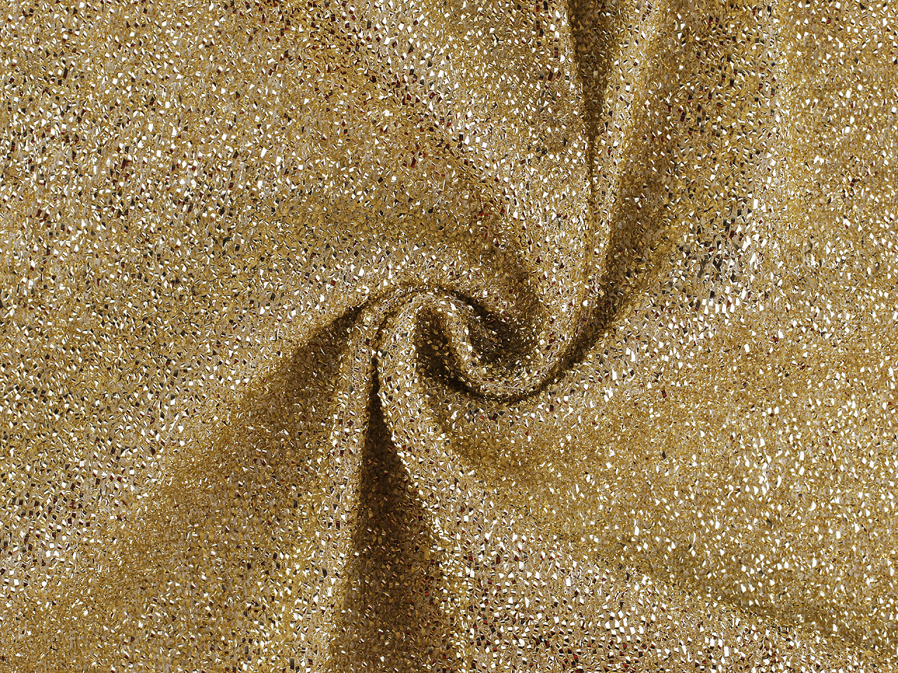 Dekorační látka je bohatě protkaná lesklými lametami. Pruží po šíři. Využijete ji na šití karnevalových kostýmů a doplňků, pytlíčků, čepic pro skřítky a různých vánočních dekorací.