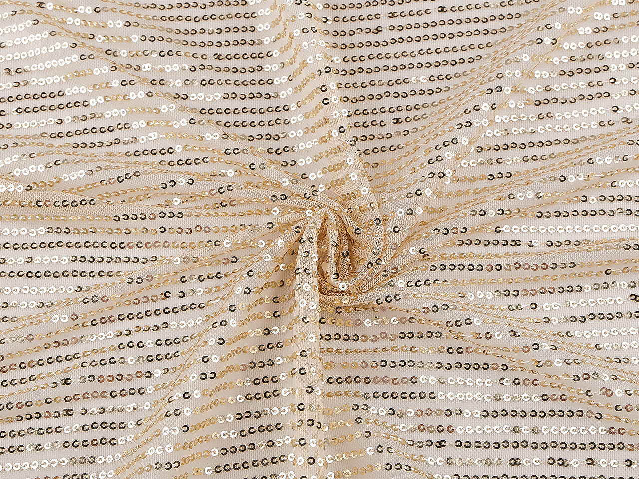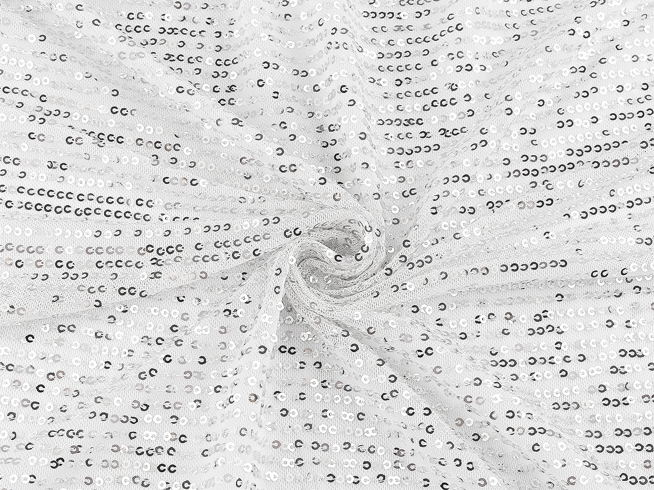 Jemný úplet je bohatě pošitý drobnými třpytivými flitry, které mu dodávají úchvatný vzhled. Ušijete z něj luxusní plesové šatů, taneční kostýmy, saka, bolerka i doplňky jako jsou třeba psaníčka.
