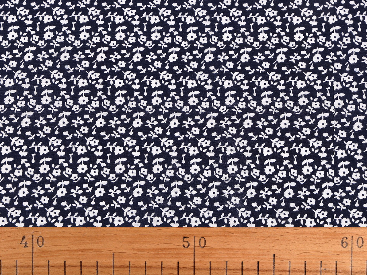 Bavlněnou látku zdobí potisk drobných květin, který připomíná tzv. modrotisk. Využijete ji na šití ubrusů, prostírání, závěsů, tašek, pytlíků, povlečení apod.
