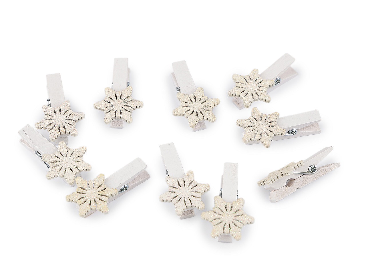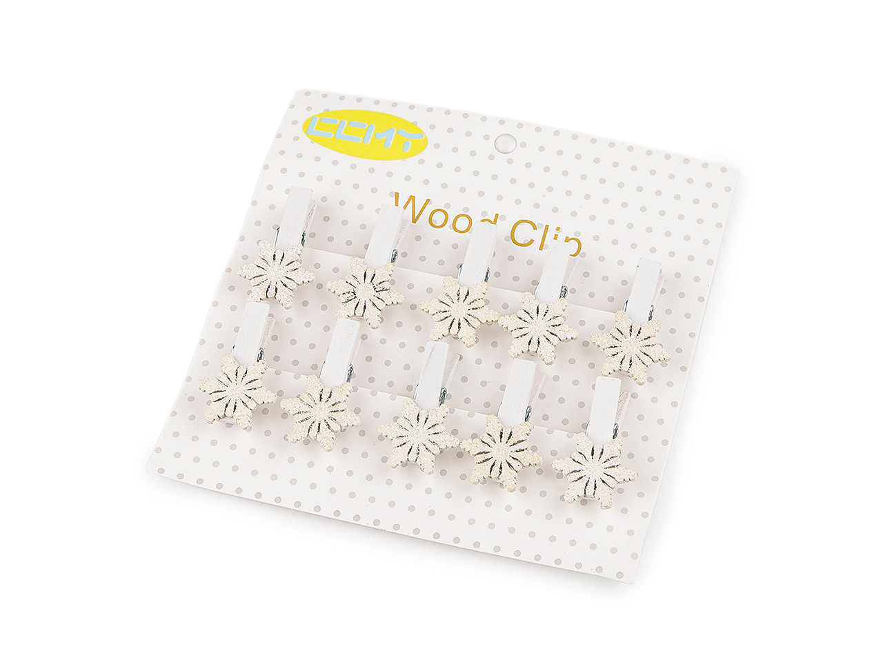 Dřevěné kolíčky s vánočními motivy stylově ozdobí dárky, dárkové tašky nebo květináče a květinové vazby. Jsou vhodné i na výrobu adventního kalendáře.