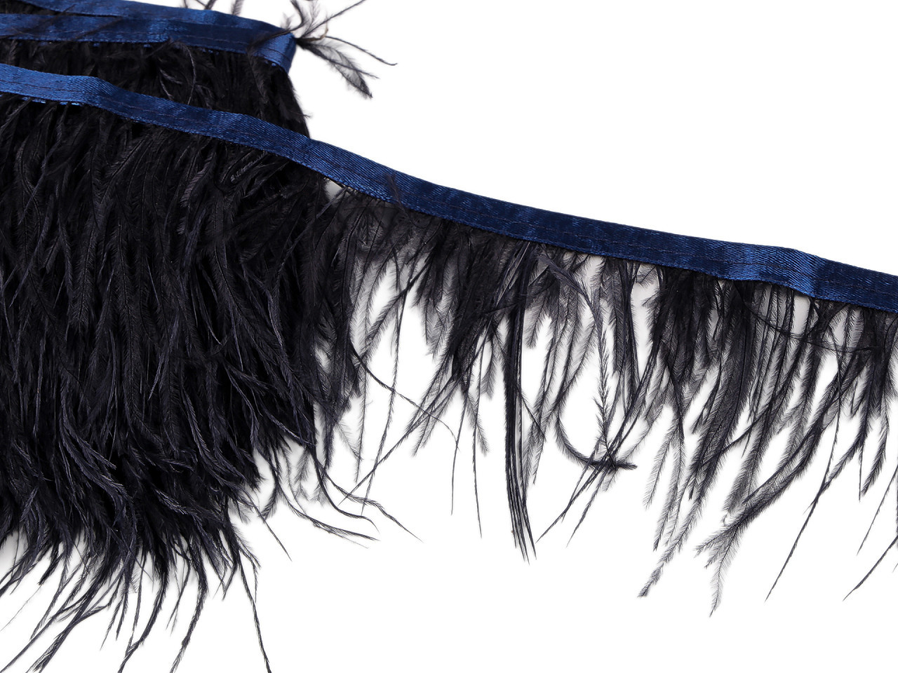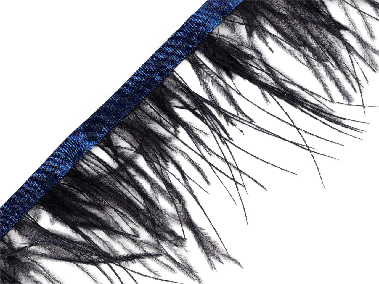 Peří je pevně prošité do saténové stuhy.