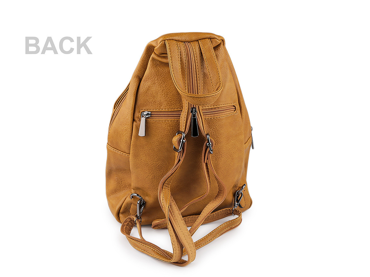 Proměňte svůj vzhled během chvilky. Tento elegantní malý dámský městský batoh se díky inovativním popruhům na zip snadno změní na šik crossbody kabelku. Je ideální volbou pro procházky, nákupy i kávu s přáteli. Nabízí chytře řešené úložné prostory: hlavní komora s klopou a zipem, dvě přední zipové kapsy, menší kapsa pod klopou a bezpečnostní zadní kapsa na zip pro cennosti. Pevné ucho a nastavitelné popruhy zajistí komfort po celý den. Dostatek místa a jedinečný styl v jednom.