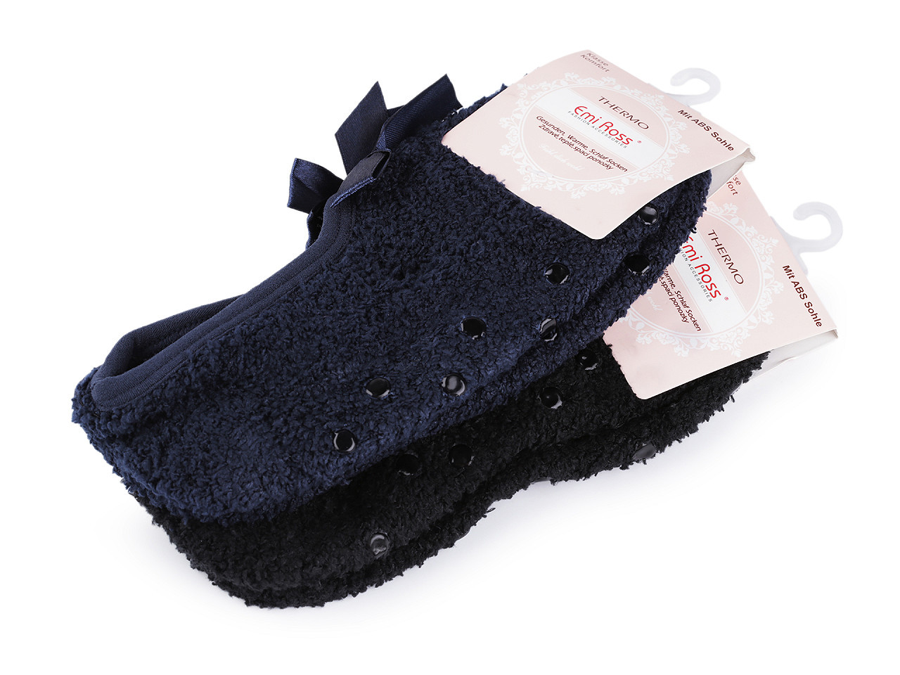 Romantické froté ponožky si oblíbíte na spaní a domácí lenošení, protože jsou neuvěřitelně měkké a hebké. Jsou ozdobené saténovou mašlí, mají plochý šev ve špičce - netlačí. Díky pružnému a přizpůsobivému okraji dobře sedí na noze. Na spodní straně mají protiskluzové puntíky.