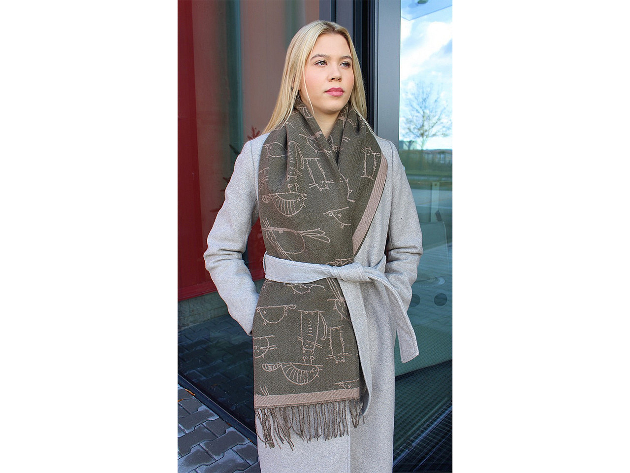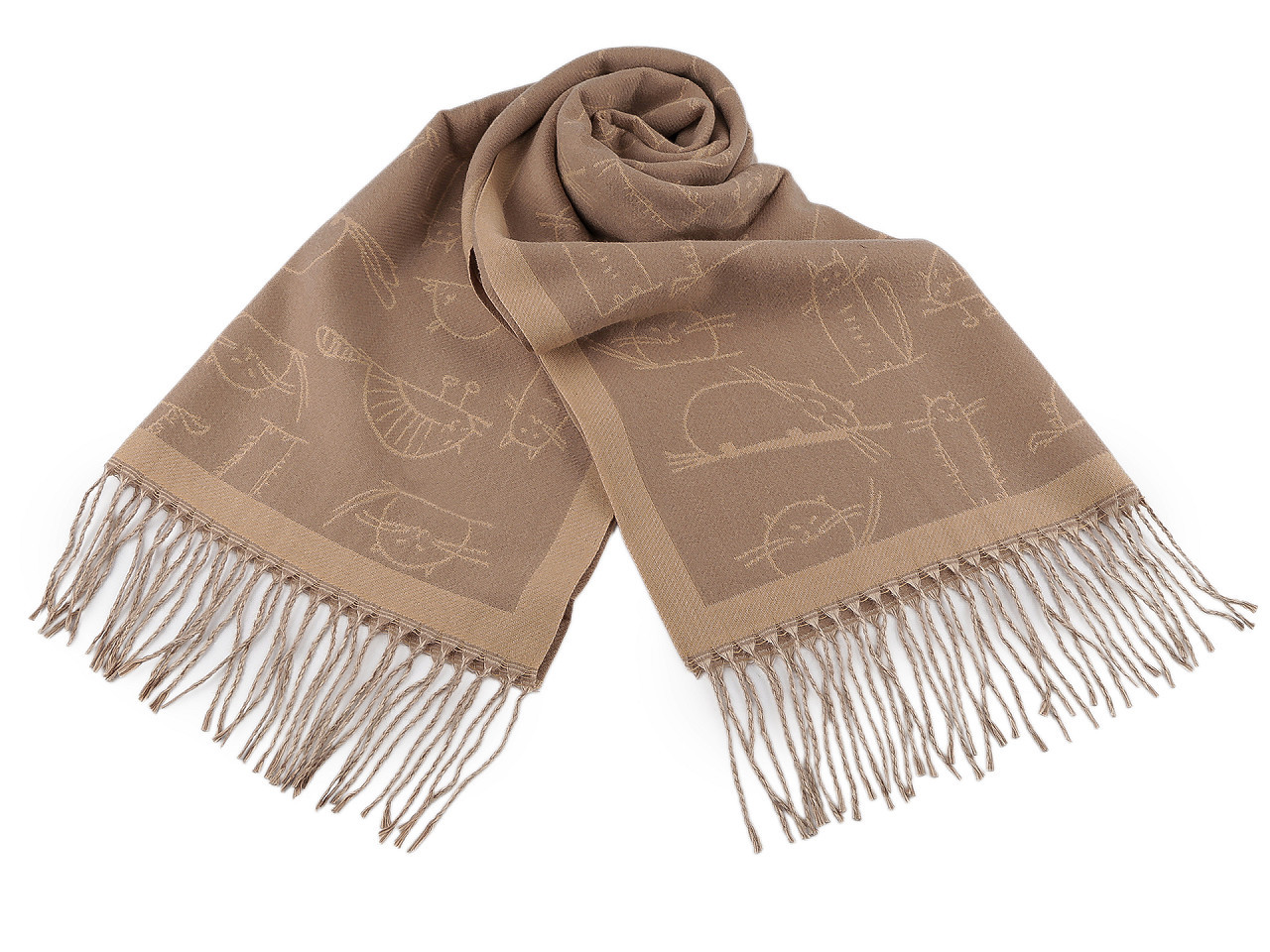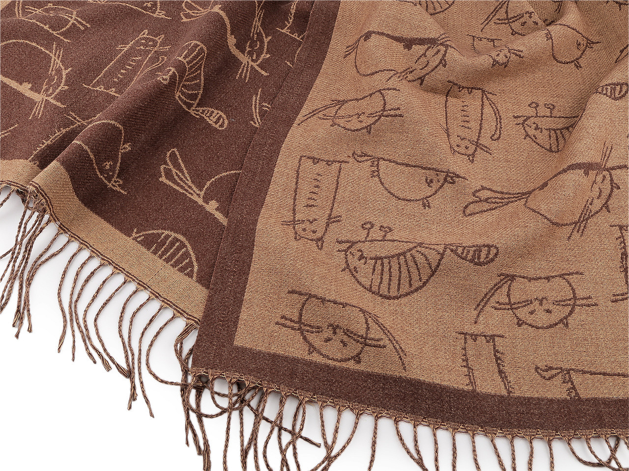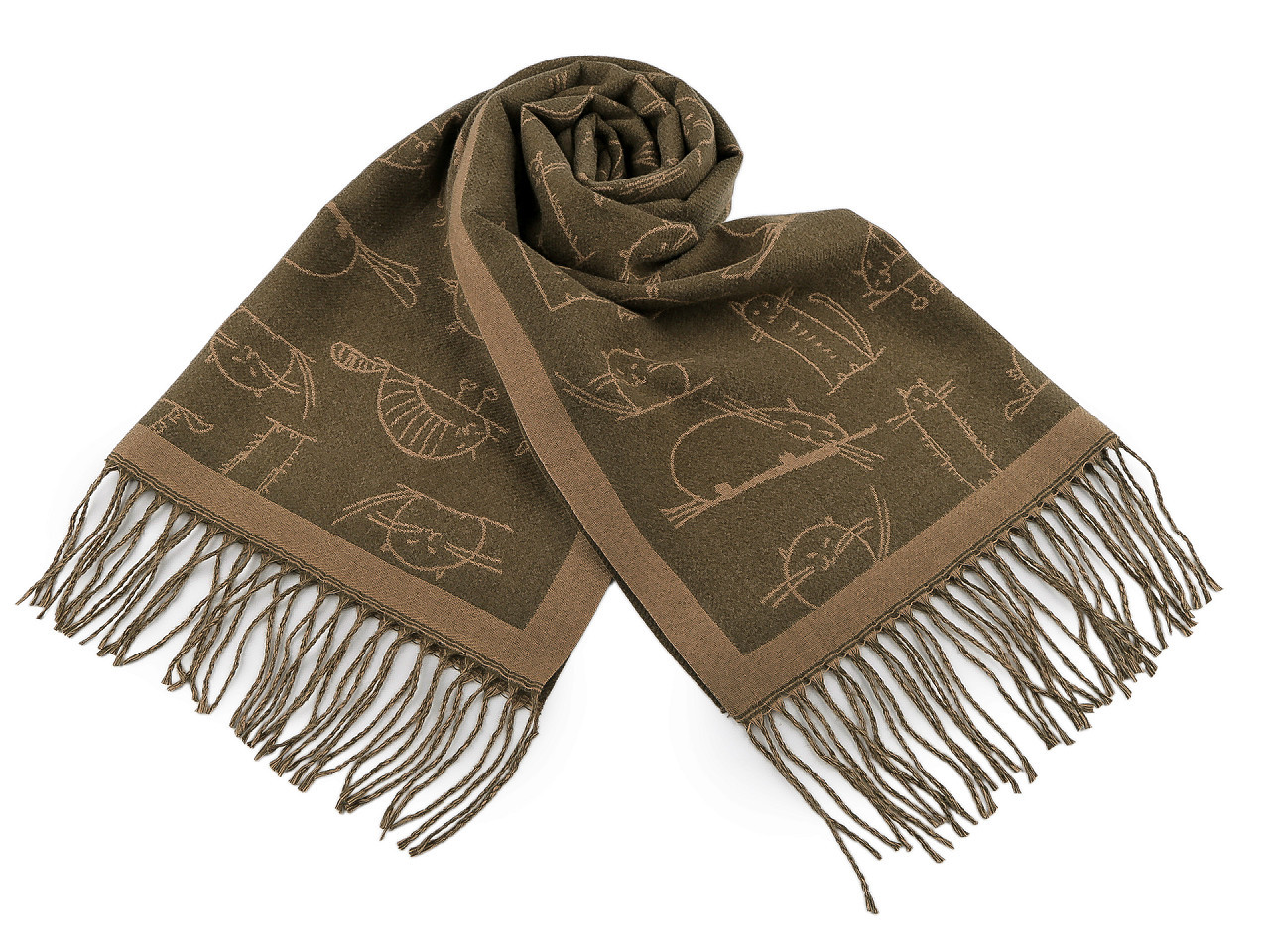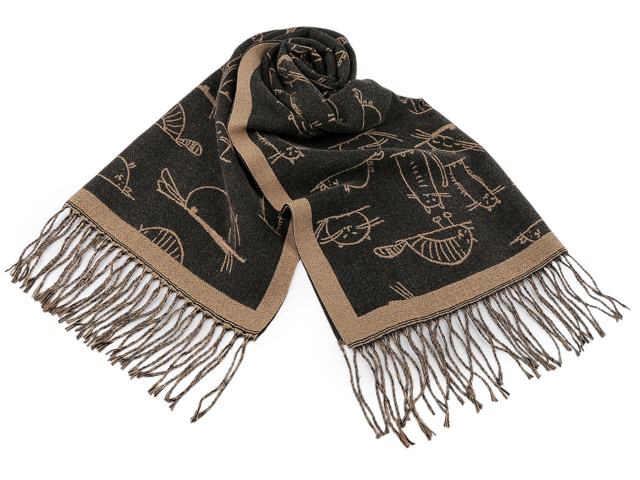 Luxusní zimní šála pléd s motivem roztomilých koček – hřejivá a elegantní. Zahalte se do tepla a stylu s naším velkým zimním plédem typu kašmír, ozdobeným hravým motivem koček. Tato luxusní šála je vyrobená z hřejivé a neuvěřitelně hebké směsi viskózy a polyesteru, která vás spolehlivě zahřeje v sychravém počasí. S délkou téměř dva metry nabízí nekonečné možnosti nošení – ke kabátu, bundě i svetru, do práce i do společnosti. Je oboustranná, s opačnými barvami na rubu, což vám dává další stylingovou variantu. Elegantní vzhled a zakončení třásněmi dodají vašemu outfitu dokonalý šmrnc.