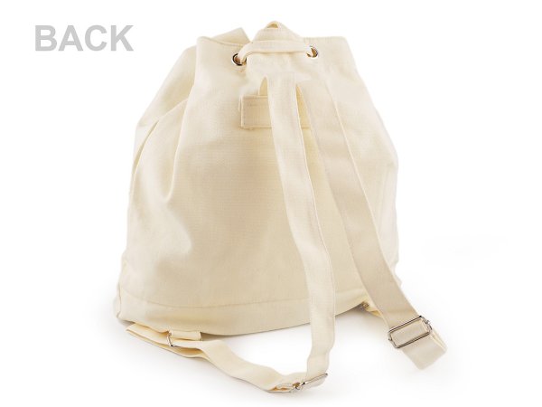 Bavlněný batoh na záda se hodí na každodenní použití i cestování. Díky rozšířenému dnu, má velký vnitřní prostor. Je vyrobený z pevné bavlněné tkaniny, uzavírá se pomocí stahovací šňůry. Uvnitř najdete menší kapsu na drobnosti. Popruhy jsou dostatečně dlouhé s možností regulace pro pohodlné užívání během celého dne. Vak využijete také do tělocvičny na sportovní potřeby.