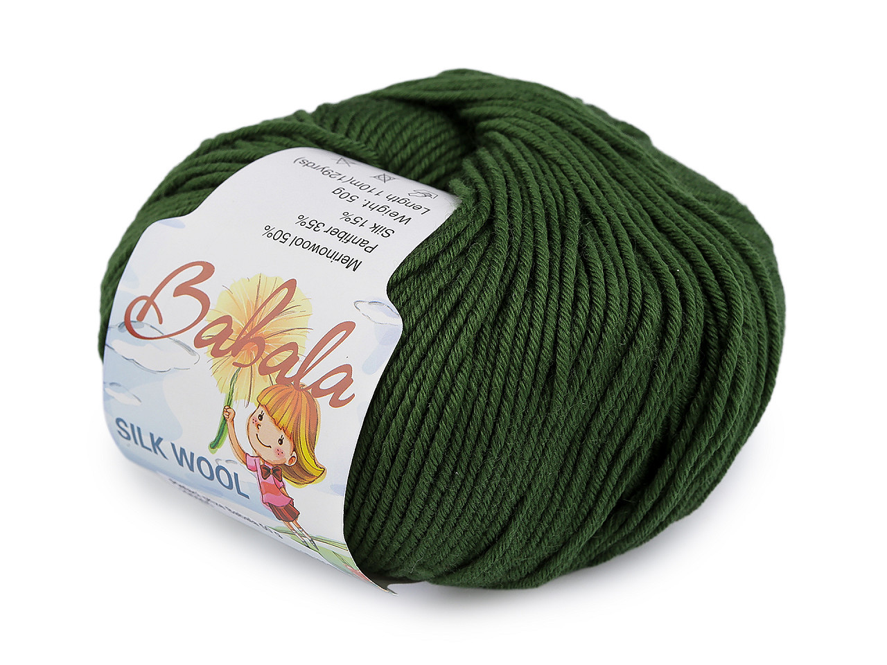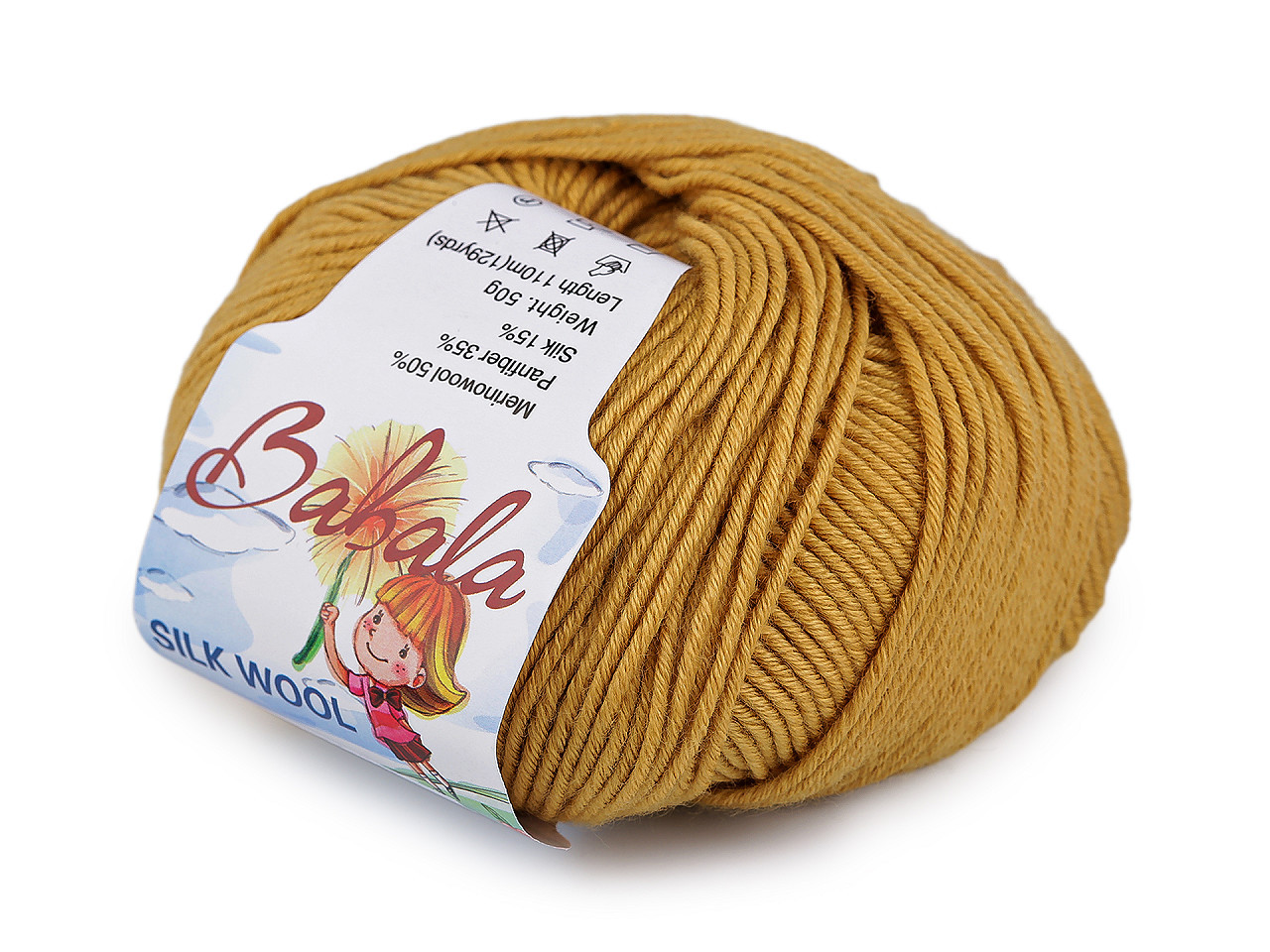 Pletací příze Babala s podílem vlny a hedvábí je jemná, vzdušná a hřejivá. Díky vlně má dobré termoizolační vlastnosti. Přízi využijte na pletení svetříků, šátků, čepic, ponožek, nákrčníků apod.