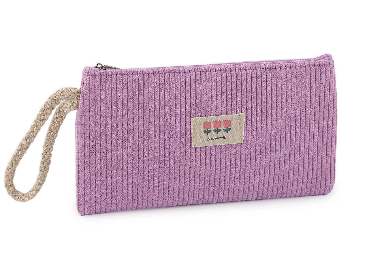 Textilní manšestrové pouzdro je ideální na doma i cestování. Je dostatečně prostorné, vejde se do něj vše potřebné např. mobil, psací potřeby, brýle apod. Můžete jej použít i na kosmetiku. Praktické poutko usnadňuje manipulaci s pouzdrem, jeho přenášení i zavěšení. Na přední straně je ozdobené textilním štítkem, zapíná se na zip.