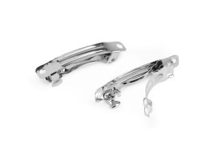 Malá francouzská sponka je vyrobená z kvalitního bižuterního kovu, ve vlasech pevně drží. Je určená k dalšímu zdobení. Obvykle se zdobí různými korálky, které se navlékají na tenký drátek . Ten se pak omotává o svrchní část spony, čímž se vytváří celkový vzhled podle vlastních představ. Na sponku můžete také nalepit květy a různé další ozdoby.
