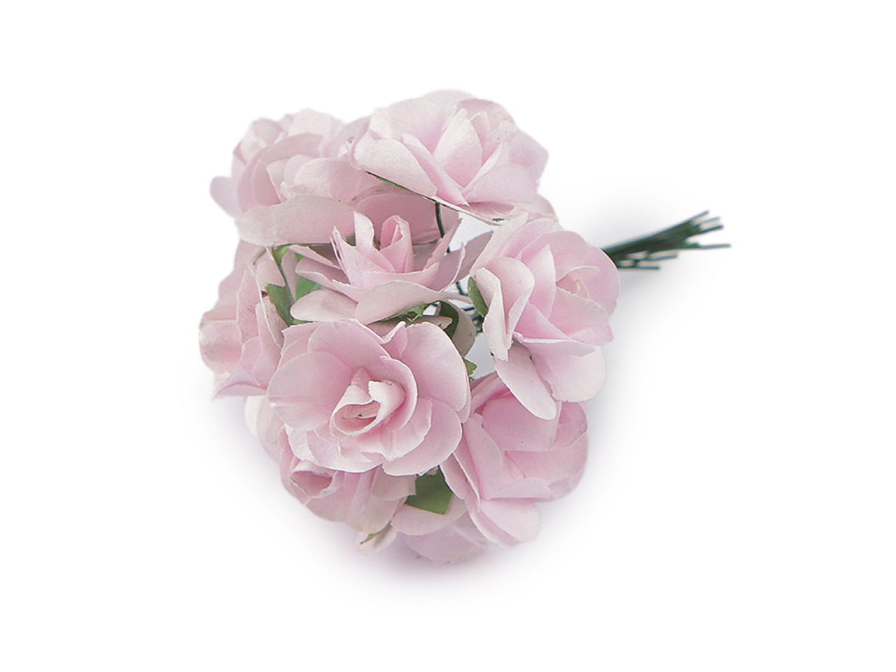 Kvalitní papírové růže mají jemný romantický vzhled. Jako stonek slouží ohebný drát. V jednom svazku je 12 ks růží.