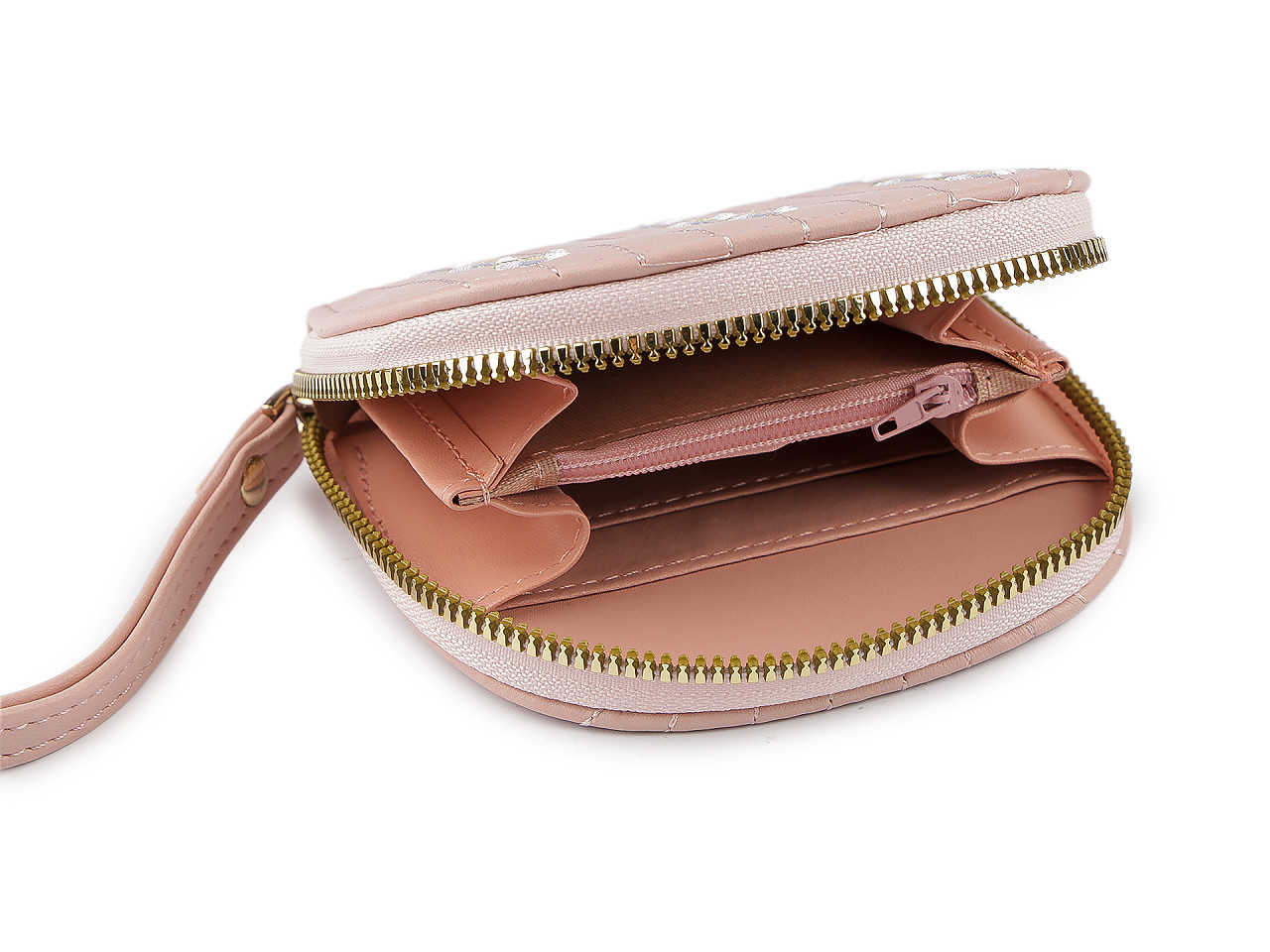 Malá šikovná peněženka se vejde do každé kabelky. Přední stranu má ozdobenou kočkou. Tento roztomilý motiv přinese hravý prvek do vašeho každodenního stylu. Peněženka je vybavená dlouhým poutkem k nošení na zápěstí.