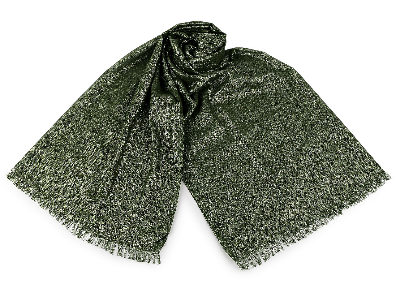 Velký dámský šátek s lurexem je univerzálním módním doplňkem. Můžete ho nosit do práce i do společnosti, jeho elegantní vzhled váš outfit dokonale doladí. Využijete ho celoročně. Šátek je oboustranný, jeho materiál je velice jemný a příjemný na dotek. Na koncích je zakončený třásněmi dlouhými 2 cm. Přidejte do svého šatníku tento unikátní kousek, který podtrhne váš osobitý styl.