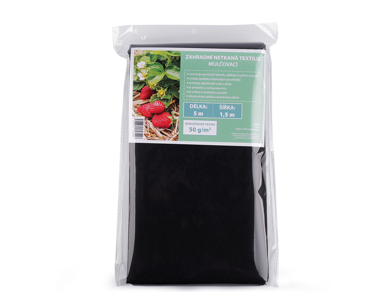 Mulčovací zahradní netkaná textilie je mimořádně pevná a určená k víceletému použití. Zamezuje prorůstání plevelu, aplikuje se přímo na půdu. Snižuje spotřebu chemických prostředků. Omezuje odpařování vody z půdy. Dlouhodobě odolává slunečnímu záření. Je prodyšná a vodopropustná.