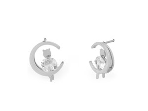 Elegantní náušnice z kvalitní nerezové oceli mají tvar měsíce se sedící kočkou, která je ozdobená třpytivým broušeným kamínkem. Budou se snadno kombinovat s různými outfity.