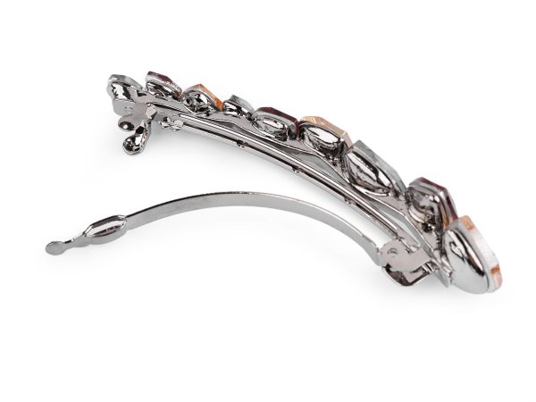 Francouzská spona zdobená akrylátovými broušenými srdci luxusně ozdobí váš účes. Má nádherný lesk, který přitahuje pozornost. Ať už máte jemné prameny nebo husté lokny, touto sponou snadno sepnete vlasy do copu nebo vytvoříte elegantní drdol, který bude vypadat, jako kdyby ho vytvořil profesionál. Spona má kvalitní celokovové provedení, zacvakávací mechanismus je pevný. Délka části pro vlasy je 4,5 cm.