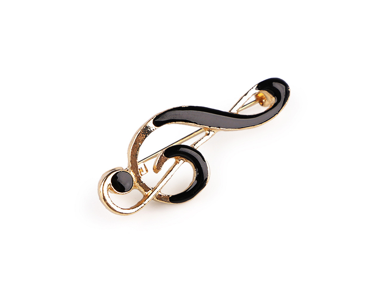 Brož s hudebním motivem ocení všichni muzikanti a milovníci hudby. Je ozdobená barevným smaltem. Kombinace jemných linií a různorodých tvarů, jako jsou noty, houslový klíč a klaviatura, dodává broži unikátní šarm. Ze zadní strany má brožový špendlík.