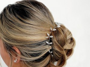 Na vlasy ji upevníte pomocí vlasových sponek, které jsou součástí balení. Můžete ji přivázat i stuhou nebo pruženkou, kterou provléknete do oček (cca Ø5 mm) na koncích ozdoby. Stuha ani pruženka není součástí balení.