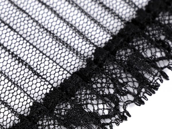 Krajka na monofilu má jemný matný motiv. Využijete ji na lemování svatebních a společenských šatů, sukní, halenek, ale i doplňků. Výsledný vzhled vašich projektů s touto krajkou bude vždy působit rafinovaně a elegantně.