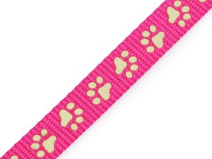 Popruh s motivy tlapek je jako stvořený na výrobu obojků, postrojů a vodítek. Můžete ho ale také využít na batohy nebo tašky. Motivy tlapek navíc ve tmě svítí, a tím zajišťují lepší viditelnost vašeho mazlíčka.