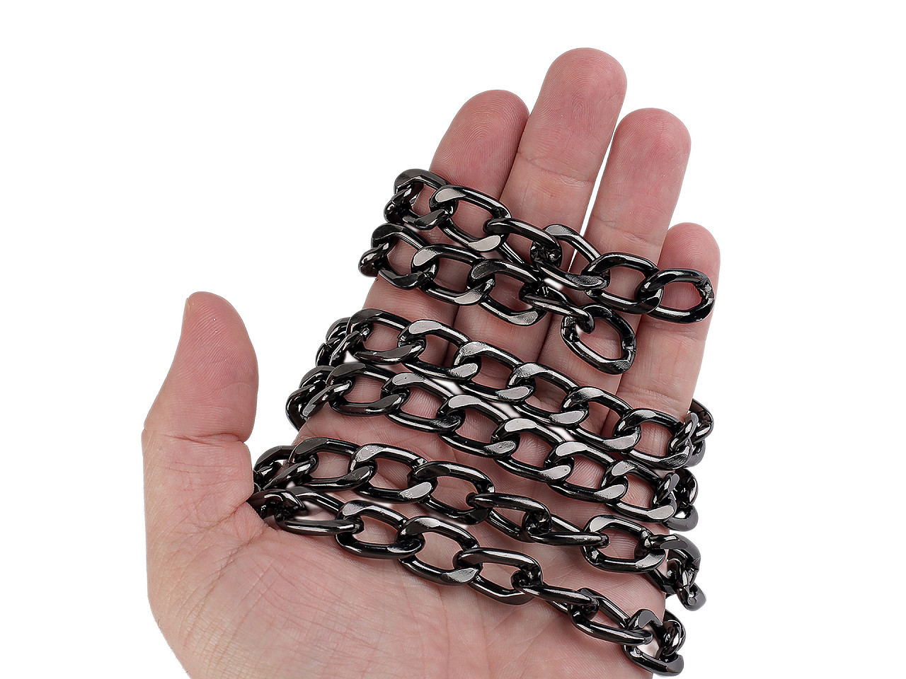 Kovový řetěz využijete především na ucha kabelek a tašek, případně jako ozdobný prvek oděvů a bot. Díky své lehkosti nezatěžuje nositele a je pohodlný na nošení. Očka nejsou v místě spoje svařená.