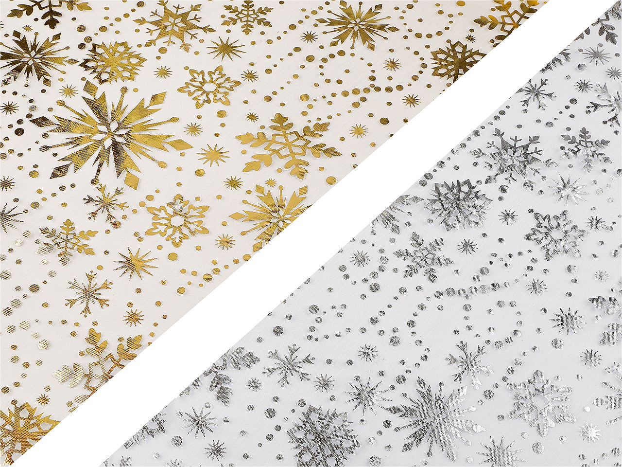Dekorační organza s metalickým potiskem vloček je ideální pro slavnostní výzdobu vašeho domova. Ozdobí vánoční tabuli, ale skvěle se hodí i k aranžování a tvorbě originálních dekorací. Šíře 36 cm umožňuje snadnou manipulaci a univerzální použití. Jednostranný metalický potisk vloček dodá každé dekoraci elegantní a sváteční vzhled. Vytvořte si jedinečnou vánoční atmosféru díky této kvalitní organze.