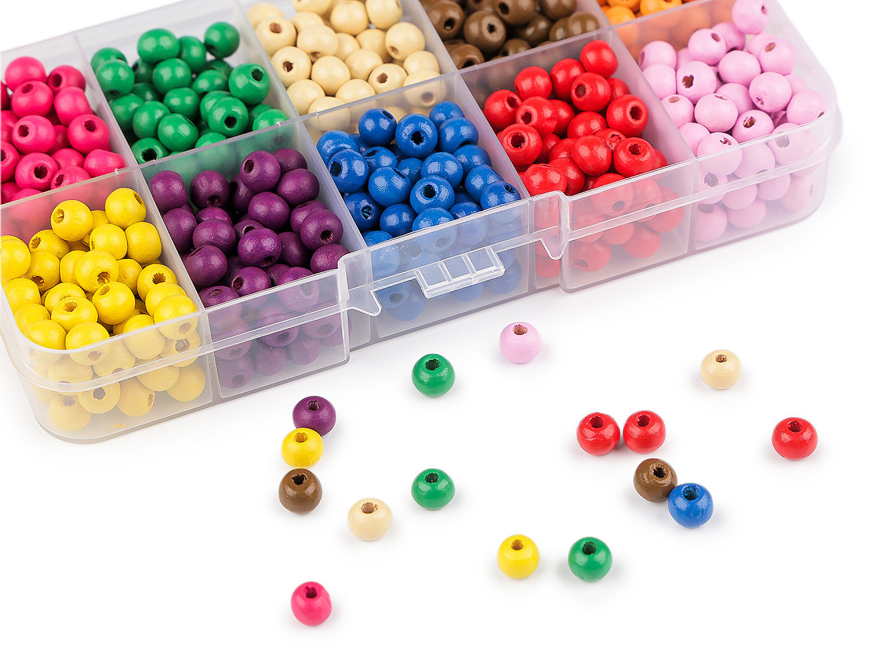 Objevte kreativitu se sadou barevných dřevěných korálků v praktickém uzavíratelném boxu. Tato sada potěší začátečníky i zkušené tvůrce šperků. Dřevěné korálky jsou lehké, snadno se s nimi pracuje a nabízejí široké možnosti využití – ideální jsou na výrobu náhrdelníků, náramků, náušnic, macrame dekorací, lapačů snů nebo kombinací s pedigem. Box je rozdělen do 10 přihrádek, z nichž každá obsahuje cca 60 korálků v jiné barvě, celkem tedy přibližně 600 kusů. S touto sadou získáte inspiraci a radost z tvoření.