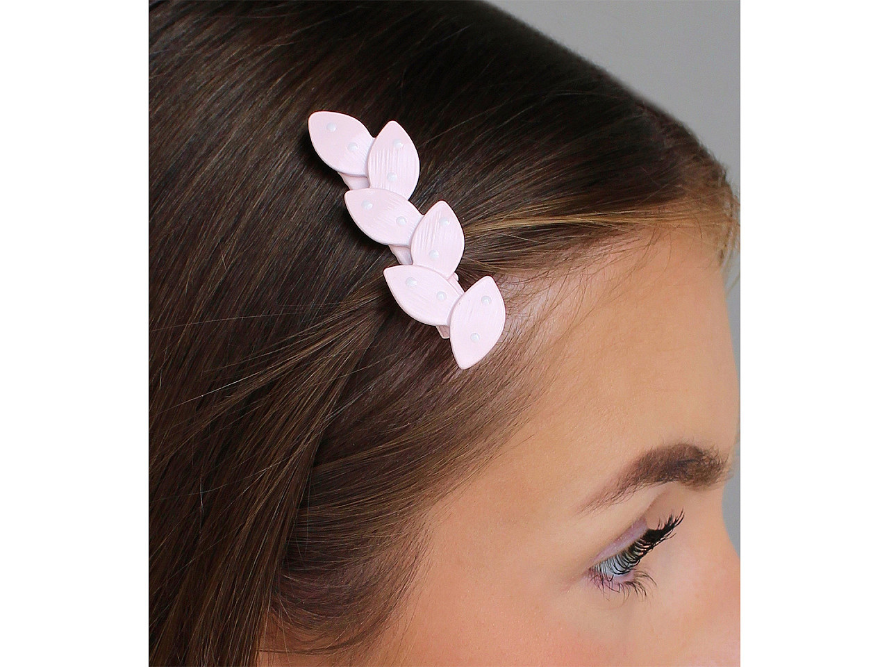 Kovová sponka do vlasů mašle, listy je stylový a praktický doplněk pro každý den i slavnostní příležitosti. Elegantní design s mašlí a motivem listů dodá vašemu účesu hravý a romantický vzhled. Sponka je vyrobena z kvalitního bižuterního kovu, má lesklý barevný lak s puntíky a díky zoubkům pevně drží ve vlasech. Skvěle se hodí na běžné nošení i společenské akce. Balená je na papírové kartě s otvorem pro snadné zavěšení na stojan.