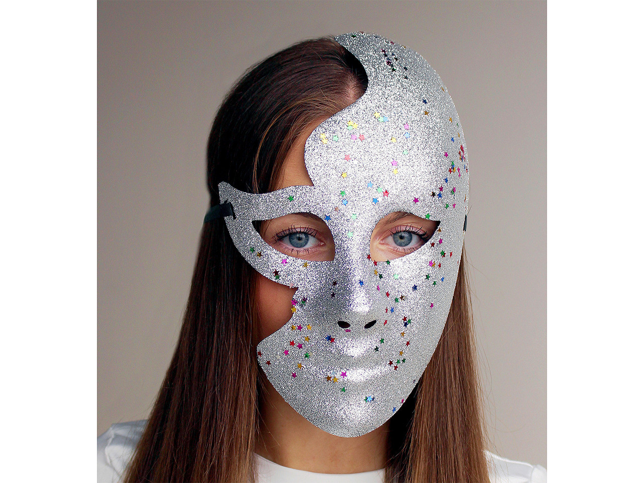 Oživte svůj outfit touto elegantní benátskou maskou - škraboškou, která je ideální na plesy, večírky, karnevaly nebo divadelní představení. Maska je celá pokrytá třpytivými glitry a zdobena drobnými flitry ve tvaru hvězd, což dodá vašemu vzhledu tajemství a kouzlo. Díky praktickému zavazování na stuhu maska pohodlně drží na obličeji a snadno se přizpůsobí. Přidejte svému stylu mystiku a staňte se hvězdou každého večera.