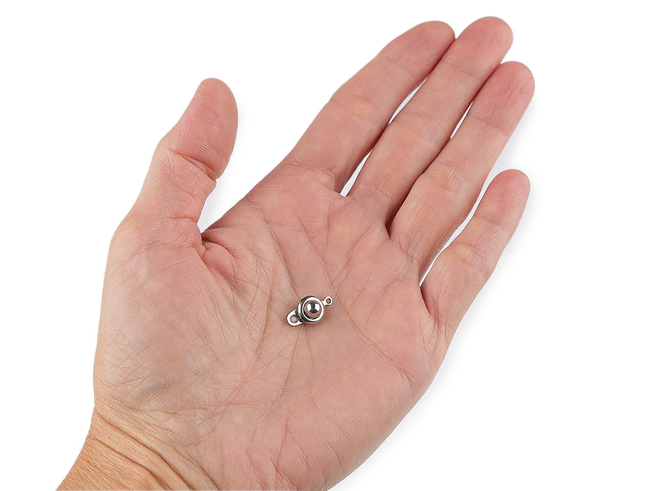 Elegantní bižuterní zapínání s provlékací kuličkou je vyrobené z kvalitní nerezové oceli, která zajišťuje dlouhou životnost a odolnost vůči opotřebení. Díky unikátní konstrukci se kulička jemně procvakne kroužkem na druhém díle zapínání a perfektně drží, což oceníte zejména při každodenním nošení. Zapínání je pohodlnou alternativou ke klasickým karabinkám a skvěle se hodí pro všechny, kteří preferují snadnou manipulaci.