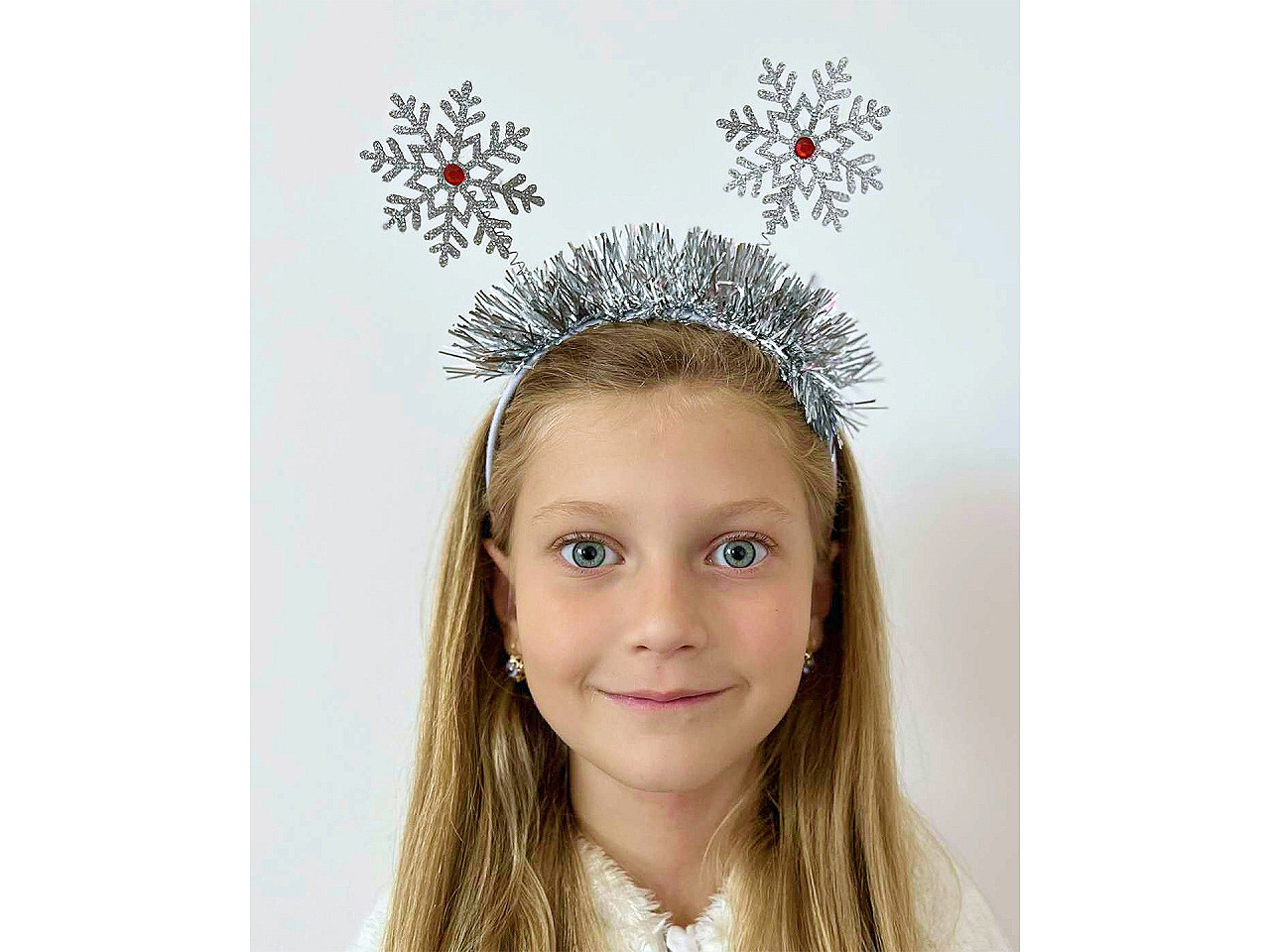 Oživte svůj slavnostní outfit stylovou čelenkou s třpytivými vločkami. Tento působivý doplněk je ideální na vánoční večírky, rodinná setkání, karneval, školní představení, Silvestra nebo do fotokoutku. Vločky jsou umístěné na pružince, z přední strany zdobené glitry, takže krásně září při každém pohybu. Čelenku dále zdobí lesklé lamety, které podtrhnou váš originální vzhled.