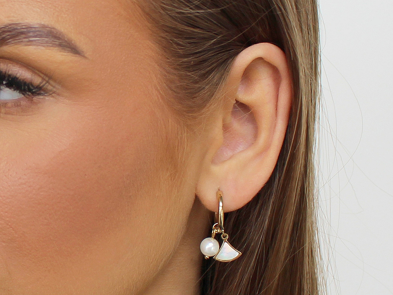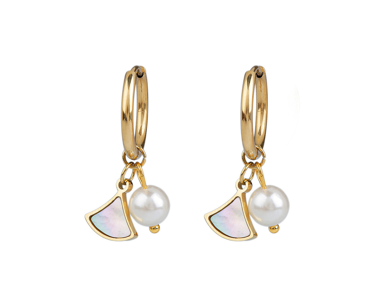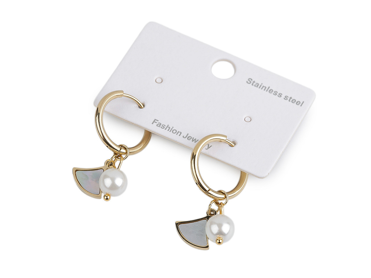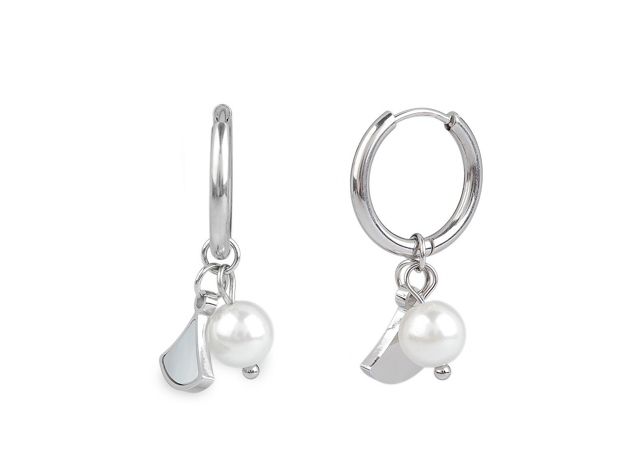 Elegantní náušnice z kvalitní nerezové oceli oceníte ke každodennímu nošení i slavnostním příležitostem. Na kroužcích je zavěšen přívěsek s perlou a lístečkem s imitací perleti, které dodávají šperku jemný a moderní vzhled. Náušnice lze snadno rozevřít a zapnout zacvaknutím, přívěsky můžete kdykoliv sundat a nosit kroužky samostatně.