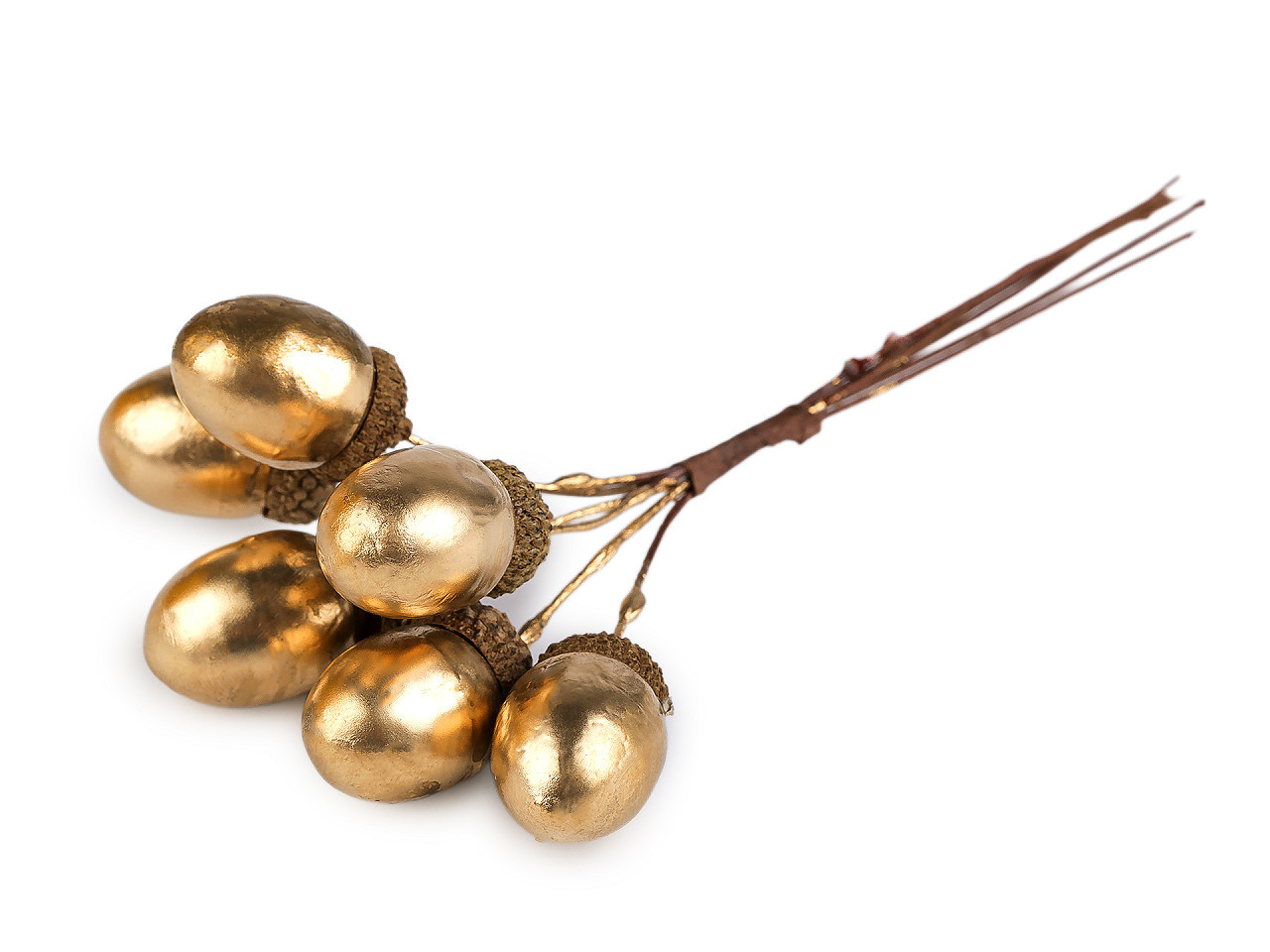 Oživte své podzimní dekorace stylovými umělými žaludy na drátku v metalickém provedení. Samotné žaludy jsou vyrobené z lehkého polystyrenu, zatímco přírodní kalíšek dodává autentický vzhled. Praktický drátek usnadňuje manipulaci a umožňuje snadné zakomponování do věnců, vazeb, svícnů či jiných aranžmá. Metalické žaludy skvěle vyniknou v každé podzimní dekoraci a dodají vašemu domovu jedinečný nádech elegance.