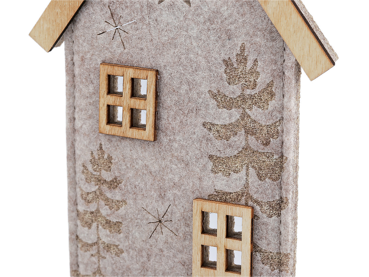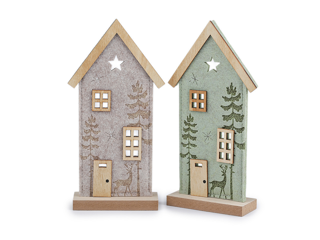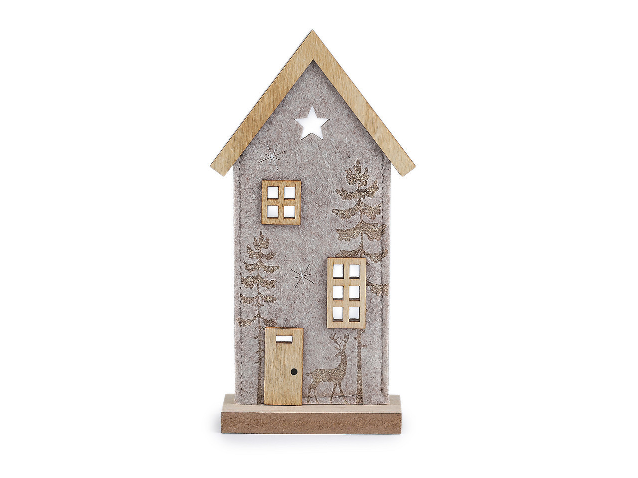 Zútulněte svůj domov stylovou dekorací. Filcový domeček je vyroben z pevného filcu, doplněný o dřevěnou střechu, podstavec a jemné detaily. Přední stranu zdobí jedinečný motiv lesa s jelenem a výřezy hvězd, které působí elegantně a vnáší do prostoru kouzlo přírody. Domeček je ideální pro různé sezónní i sváteční období – zejména jako originální vánoční dekorace. Perfektně se hodí na krbovou římsu, okenní parapet, poličku nebo jako součást větší dekorativní kompozice na stole. Váš interiér získá jedinečnou atmosféru a osobitý styl.
