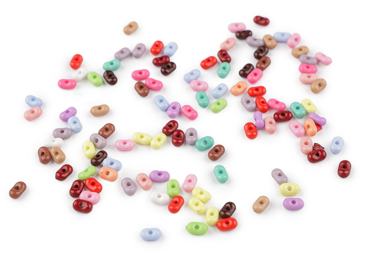 Oživte své kreativní projekty hravými plastovými korálky ve tvaru arašídů. Barevný mix korálků nabízí pestré, syté barvy a zajímavý 3D efekt při navlékání. Korálky jsou kvalitně zpracované – hladké po celém povrchu, bez otřepení nebo viditelných švů. Díky unikátnímu tvaru, kdy jsou konce buclaté a střed zmáčknutý, působí velmi originálně. Průvlek je umístěný uprostřed korálku, což usnadňuje navlékání. Využijete je na výrobu bižuterie, zdobení oděvů, tašek nebo bytových dekorací. V balení 10 g najdete cca 210 kusů korálků – ideální množství pro vaše tvořivé nápady.