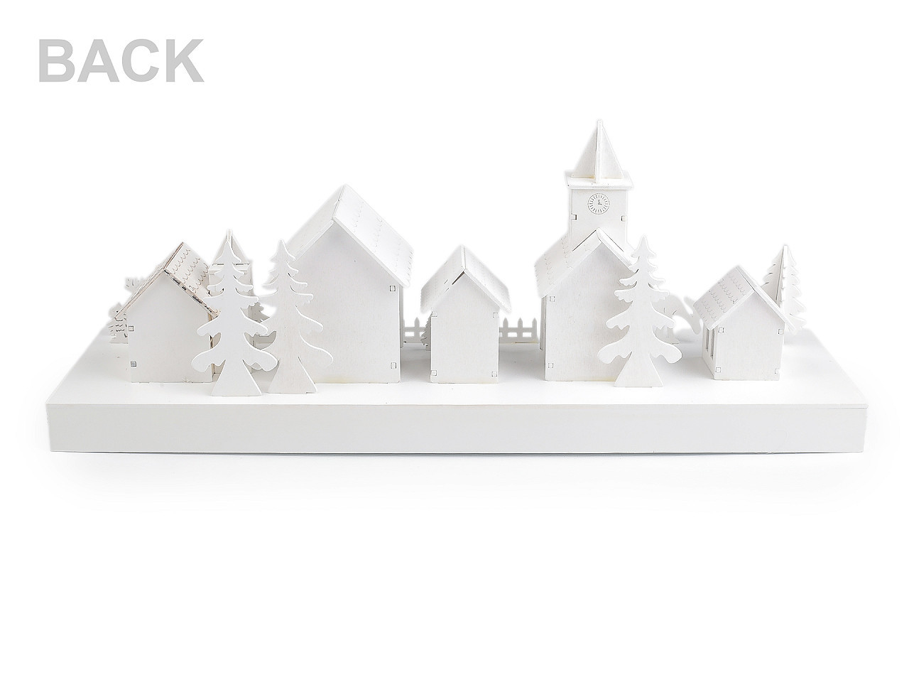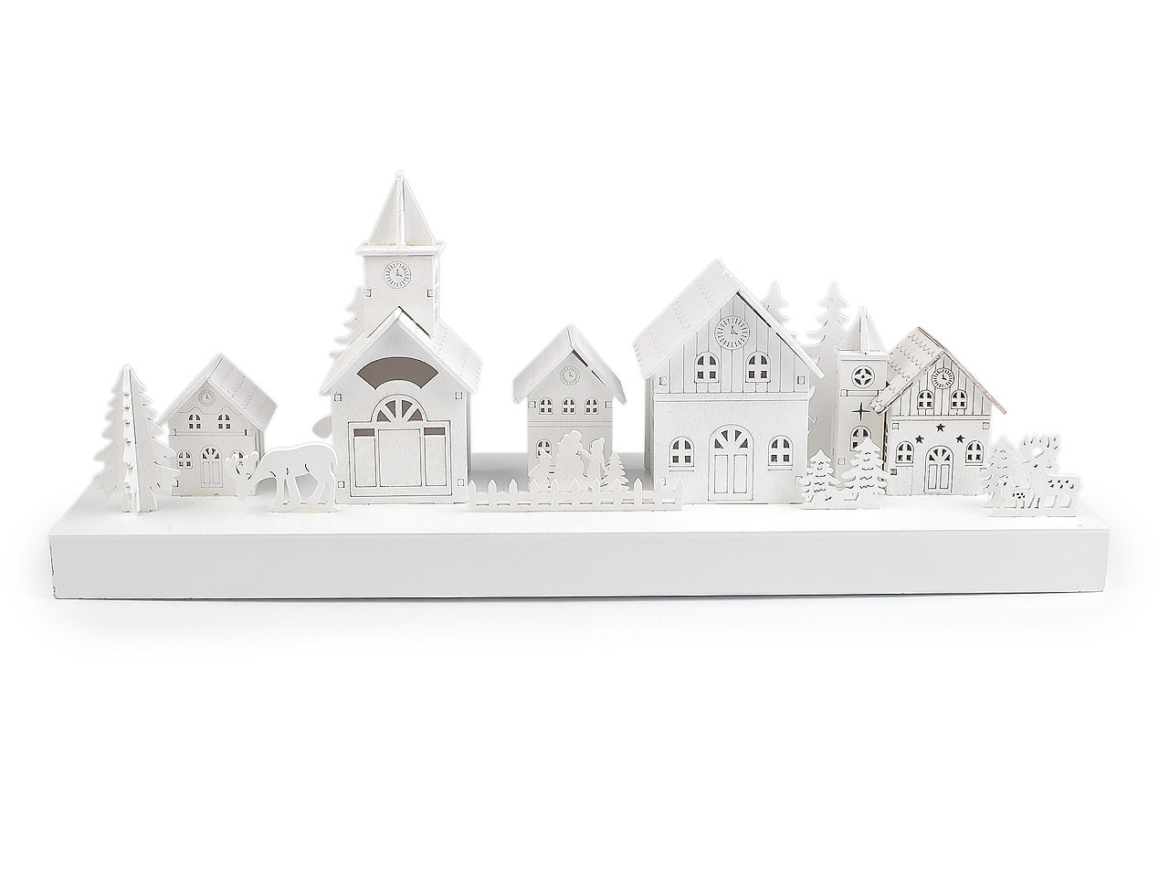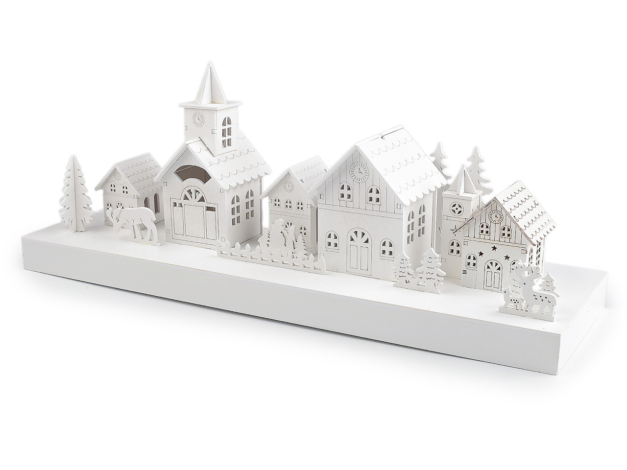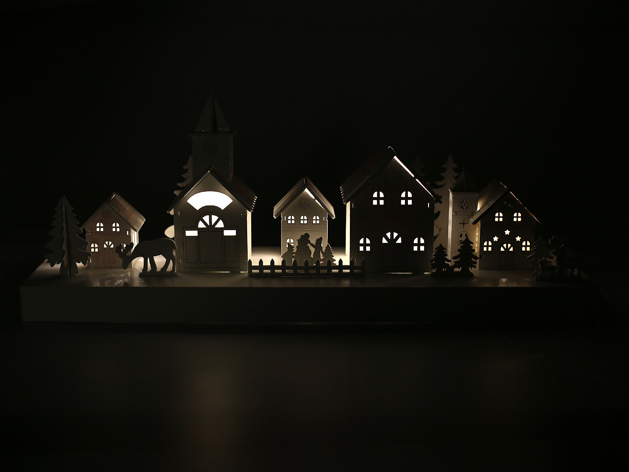 Rozzařte svůj domov kouzlem svátků s dřevěnou vesnicí svítící. Precizně zpracované výřezy a poutavé detaily udělají z této vesničky originální ozdobu svátečního stolu, police i okenního parapetu. Teplé hřejivé světlo jemně prosvětlí interiér, navodí pocit útulnosti a klidu. Ideální pro vytvoření příjemné atmosféry při rodinných večeřích, posezení s přáteli nebo večerní relaxaci.