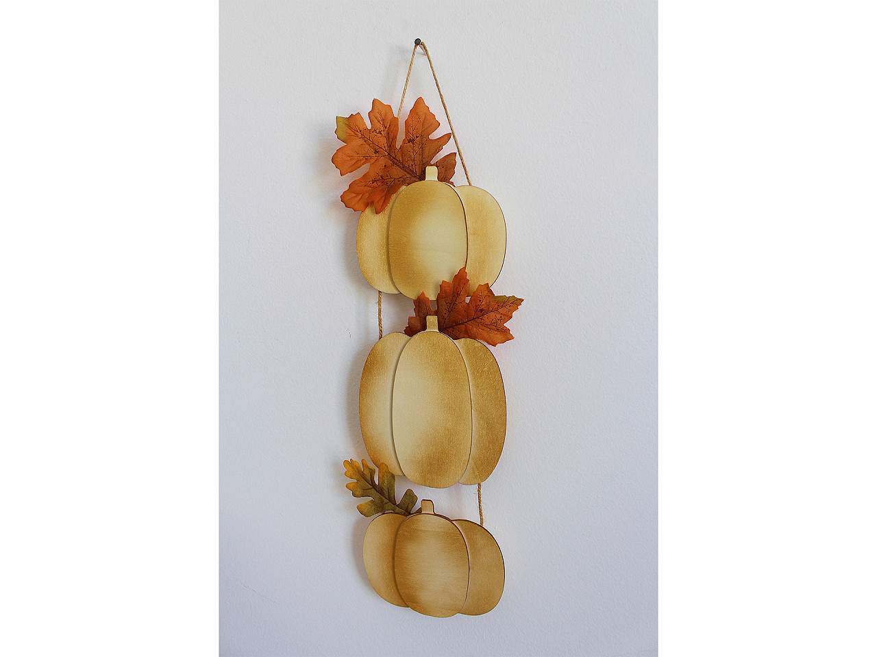 Oživte svůj domov podzimní atmosférou s dřevěným závěsem dýní, který je skvělý k vlastnímu dotvoření. Závěs z kvalitní nelakované překližky nabízí hladký povrch, ideální pro malování, lakování, lepení třpytek nebo jiné dekorační techniky. Díky praktickému provázku jej snadno zavěsíte na zeď, dveře či okno. Originální dekorace na Halloween, podzimní období i celoroční vystavení. Výřezy dýní o rozměrech 12,8 × 10,8 cm a 12,8 × 14,3 cm vyniknou samostatně i ve vaší kreativní úpravě. Vhodné pro tvořivé děti i dospělé.