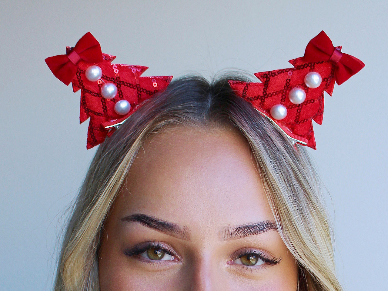 Oživte svůj vánoční účes stylovými sponkami s motivem stromečku. Tyto originální párty sponky potěší malé i velké slečny – dětem vykouzlí roztomilý účes, dospělým dodají šmrnc na vánočním večírku. Sponky jsou ozdobené perlami, flitry a sametovou mašlí, jejich semišová přední strana působí luxusně. Díky zoubkům perfektně drží ve vlasech, ale využijete je i jako dekoraci na tašku či zimní ozdobu. Skvělý doplněk pro slavnostní atmosféru.