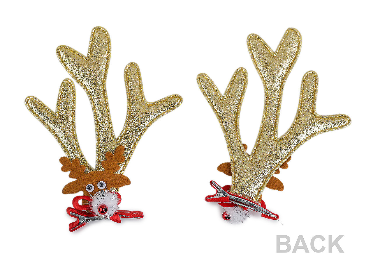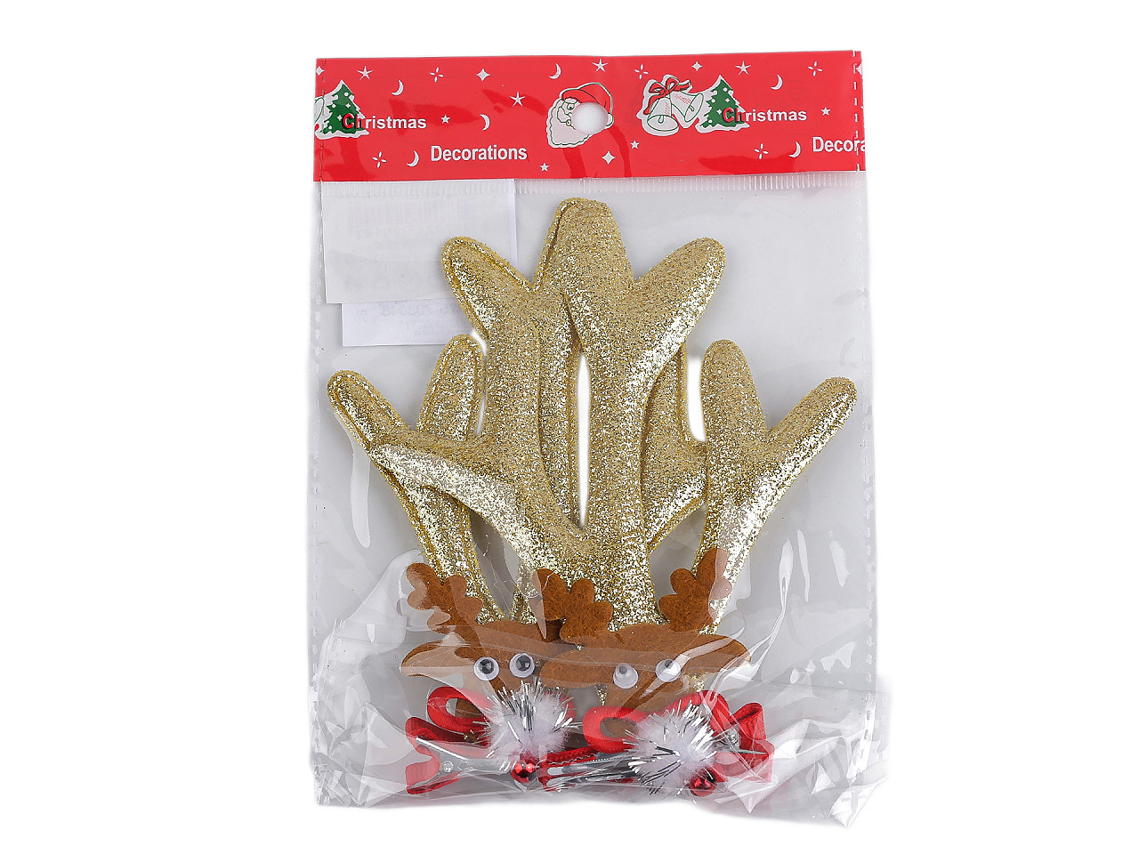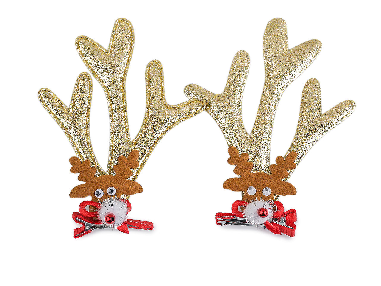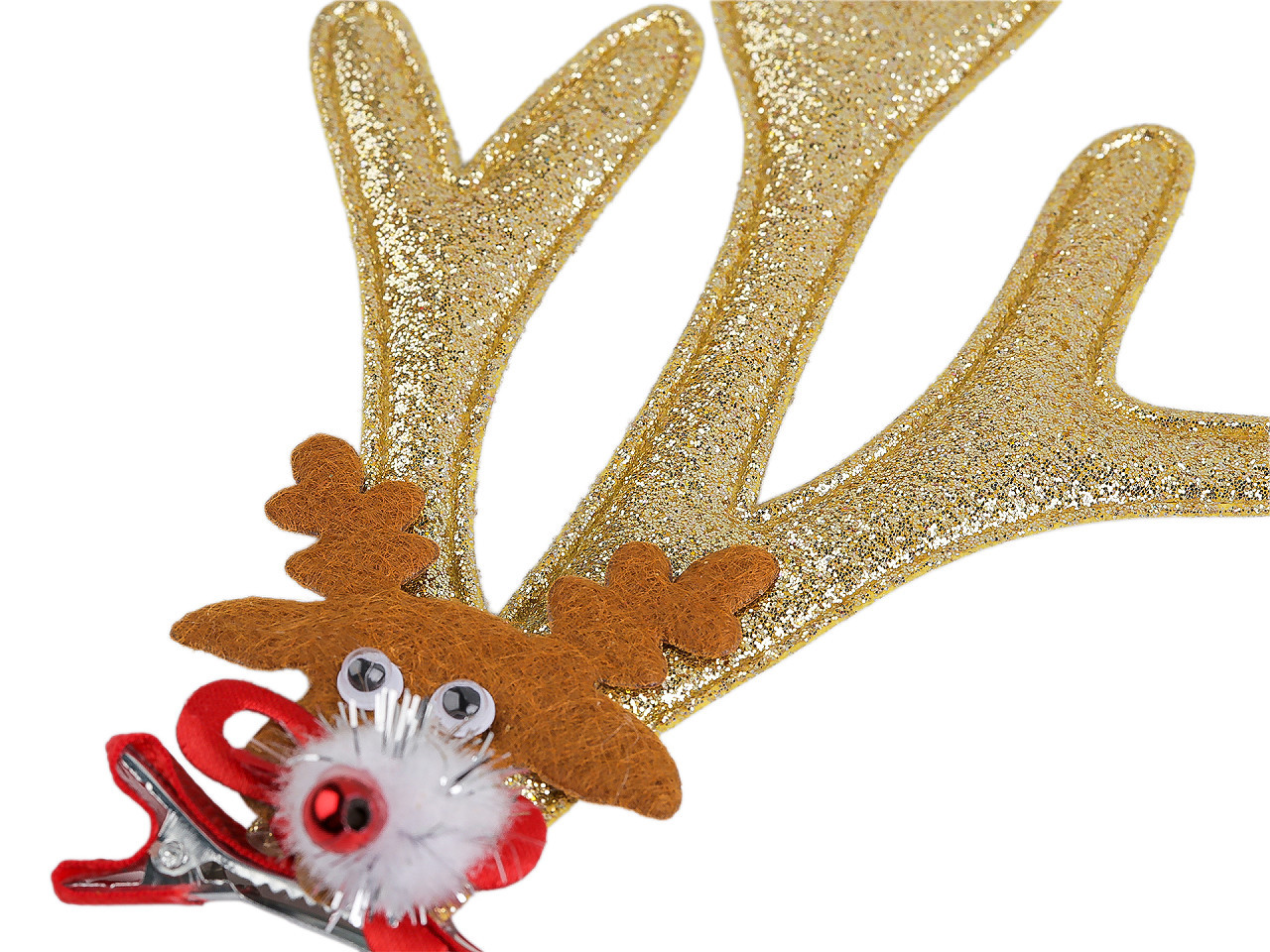 Rozzařte svůj vánoční účes originálními párty sponkami s motivem soba. Sponky potěší malé i velké slečny a stanou se nepostradatelným doplňkem na vánoční večírek i zimní oslavy. Sponky zdobí pohyblivé plastové oči, zlaté třpytivé parůžky a na čumáku najdete mašličku s lurexovou bambulkou a lesklým korálkem. Díky zoubkům perfektně drží v účesu, ale můžete je využít i jako ozdobu na tašku nebo zimní dekoraci. Stylový a univerzální doplněk, který vykouzlí úsměv.