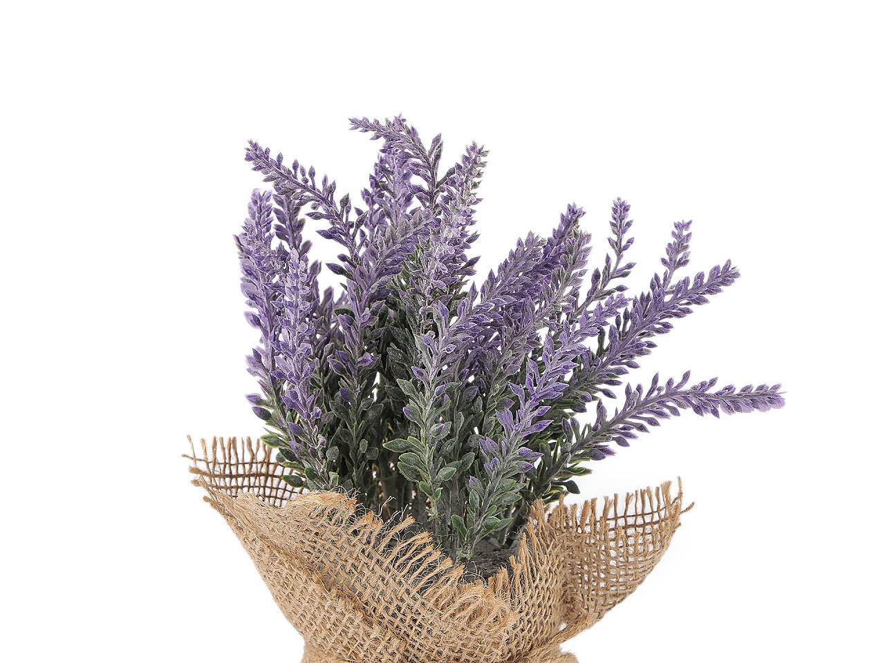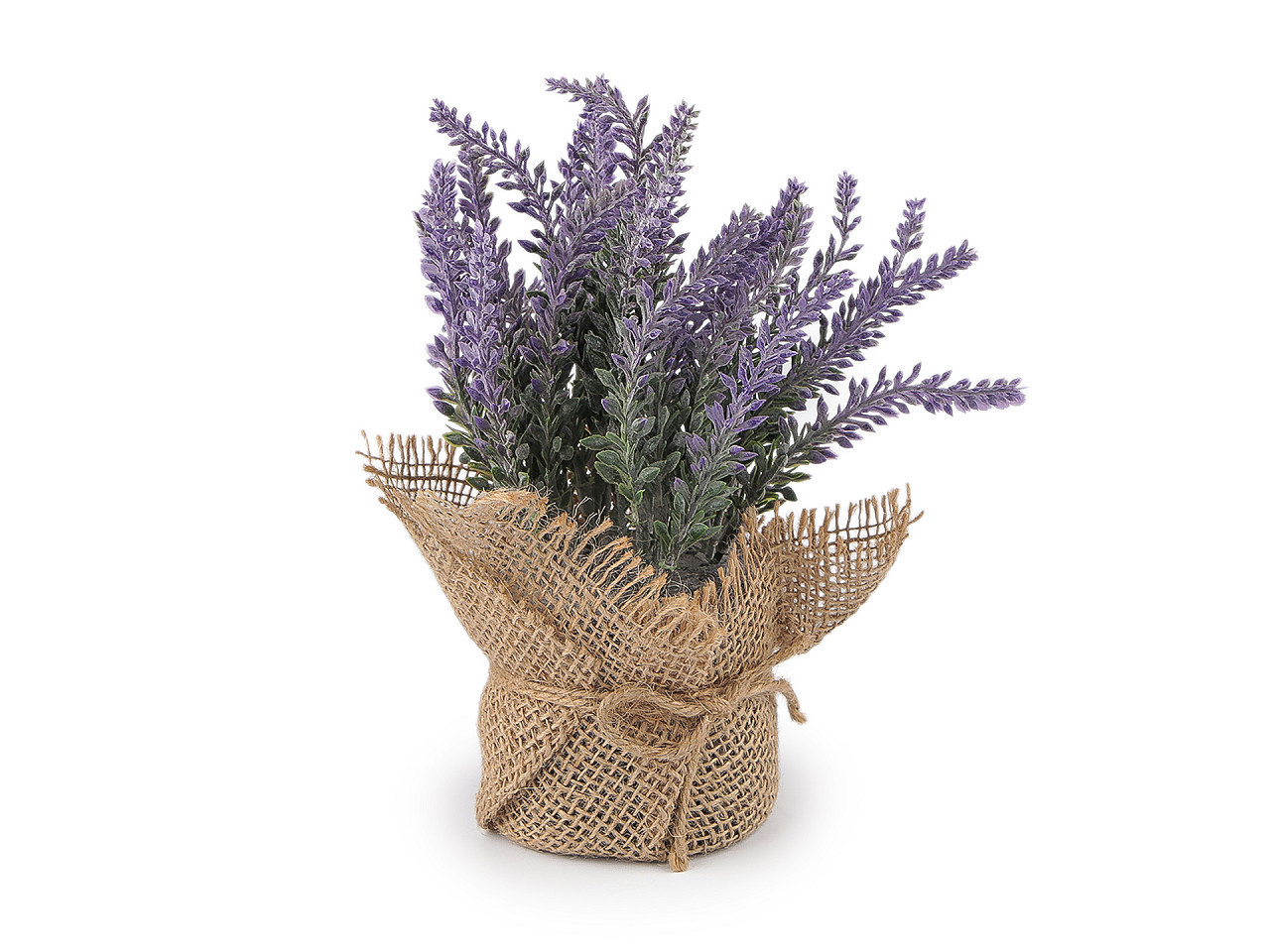 Vneste do svého domova atmosféru Středozemí s umělou levandulí v jutovém obalu. Díky rustikálnímu jutovému obalu získává levandule autentický vzhled, který skvěle zapadne do moderních i tradičních interiérů. Výhodou je snadné umístění – levanduli můžete vložit do truhlíků, květináčů nebo ji využít v dekorativních aranžmá. Díky pevné konstrukci má dobrou stabilitu a dlouhodobě si udrží svůj tvar. Užijte si krásu levandule bez nutnosti péče.
