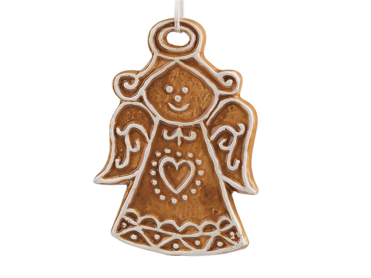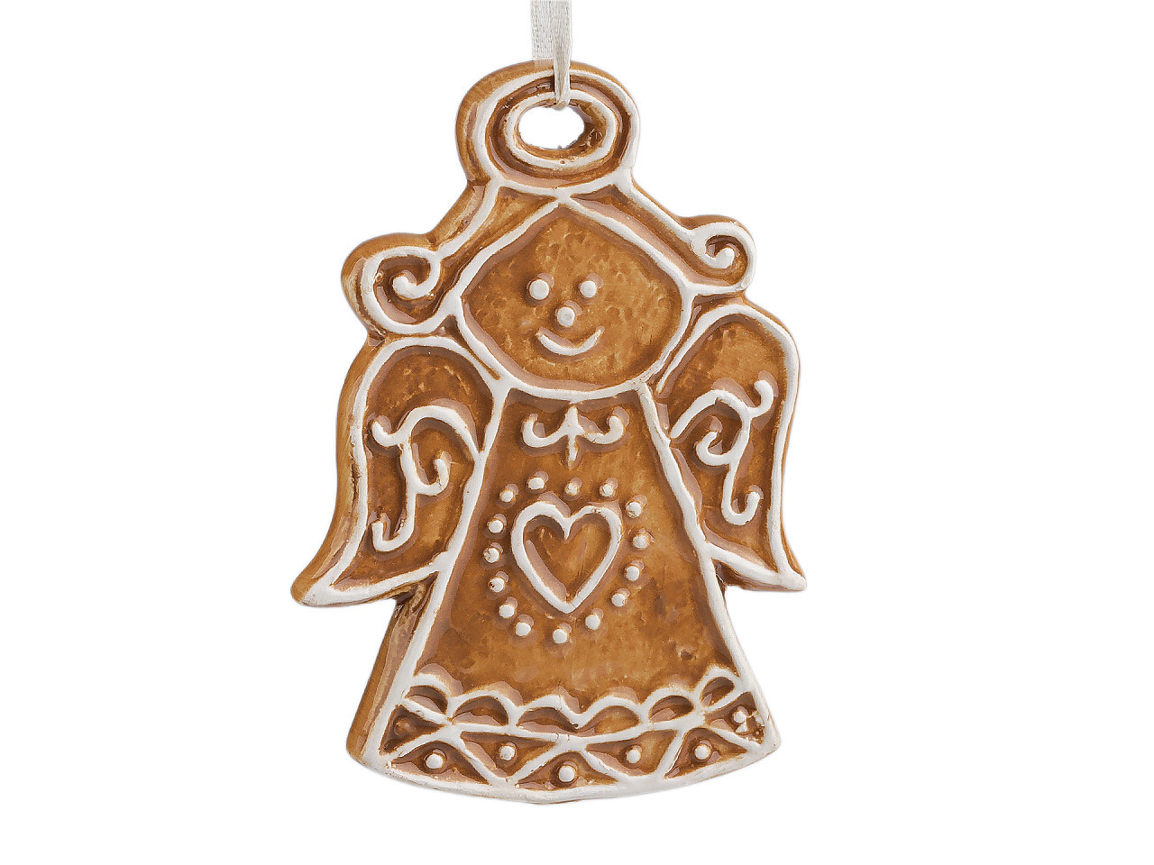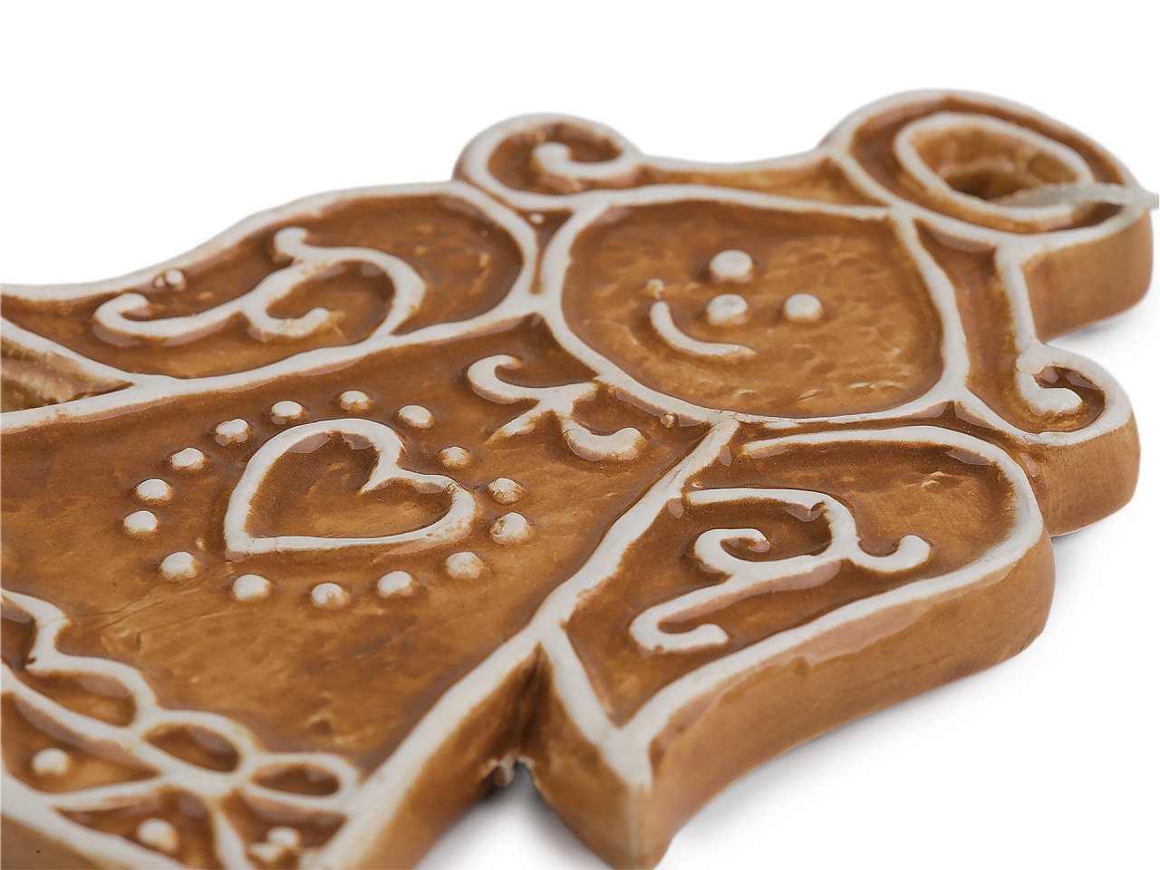 Jedinečný dekorační perníček ve tvaru anděla rozzáří váš domov sváteční atmosférou. Vyniká krásným bílým dekorem a hravými detaily, které zaujmou na první pohled. Perníček je jednostranně zdobený, takže perfektně vynikne při zavěšení. Díky praktickému poutku jej snadno pověsíte na vánoční stromeček, adventní věnec nebo třeba na zeď. Skvělá volba pro originální vánoční výzdobu.
