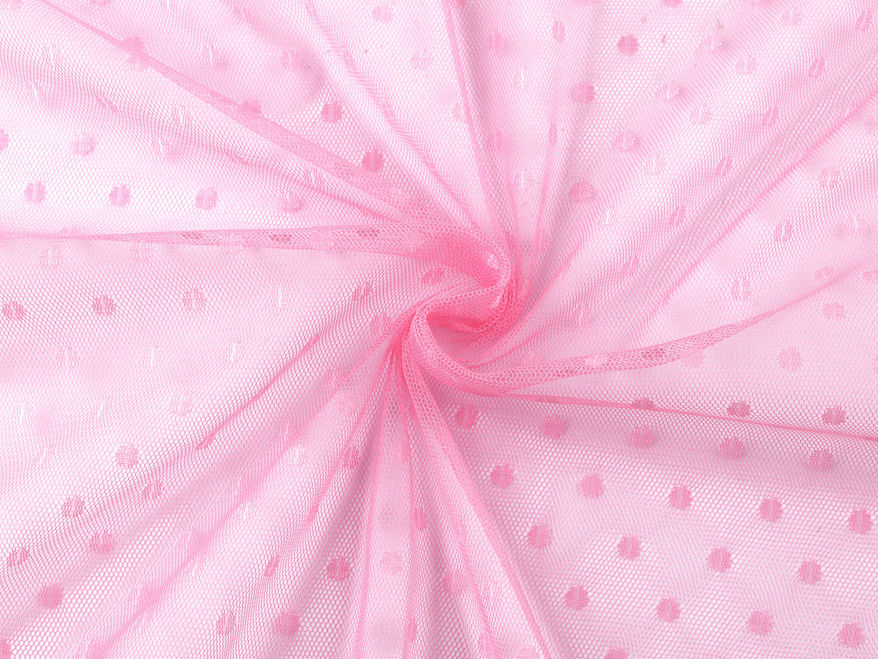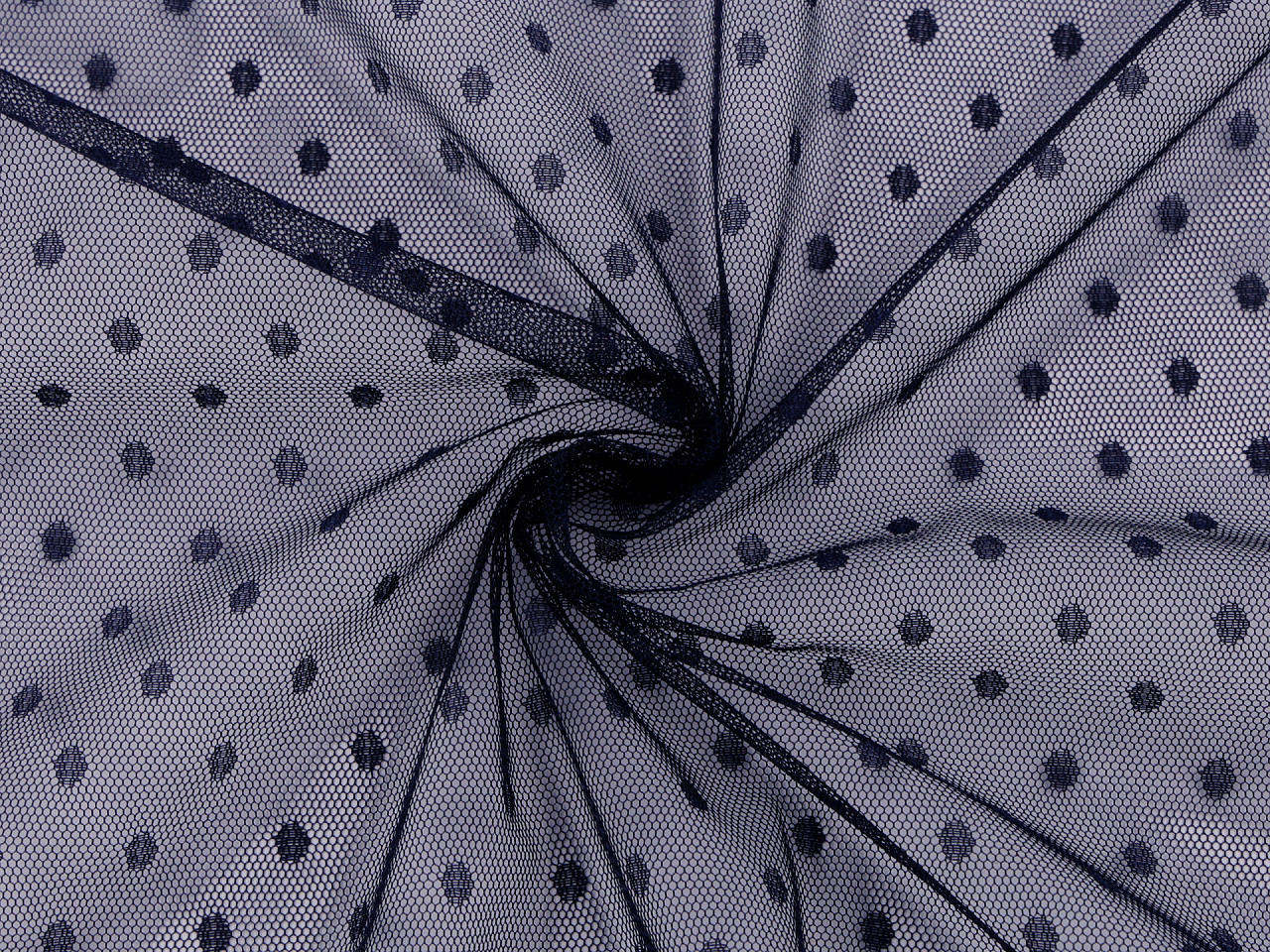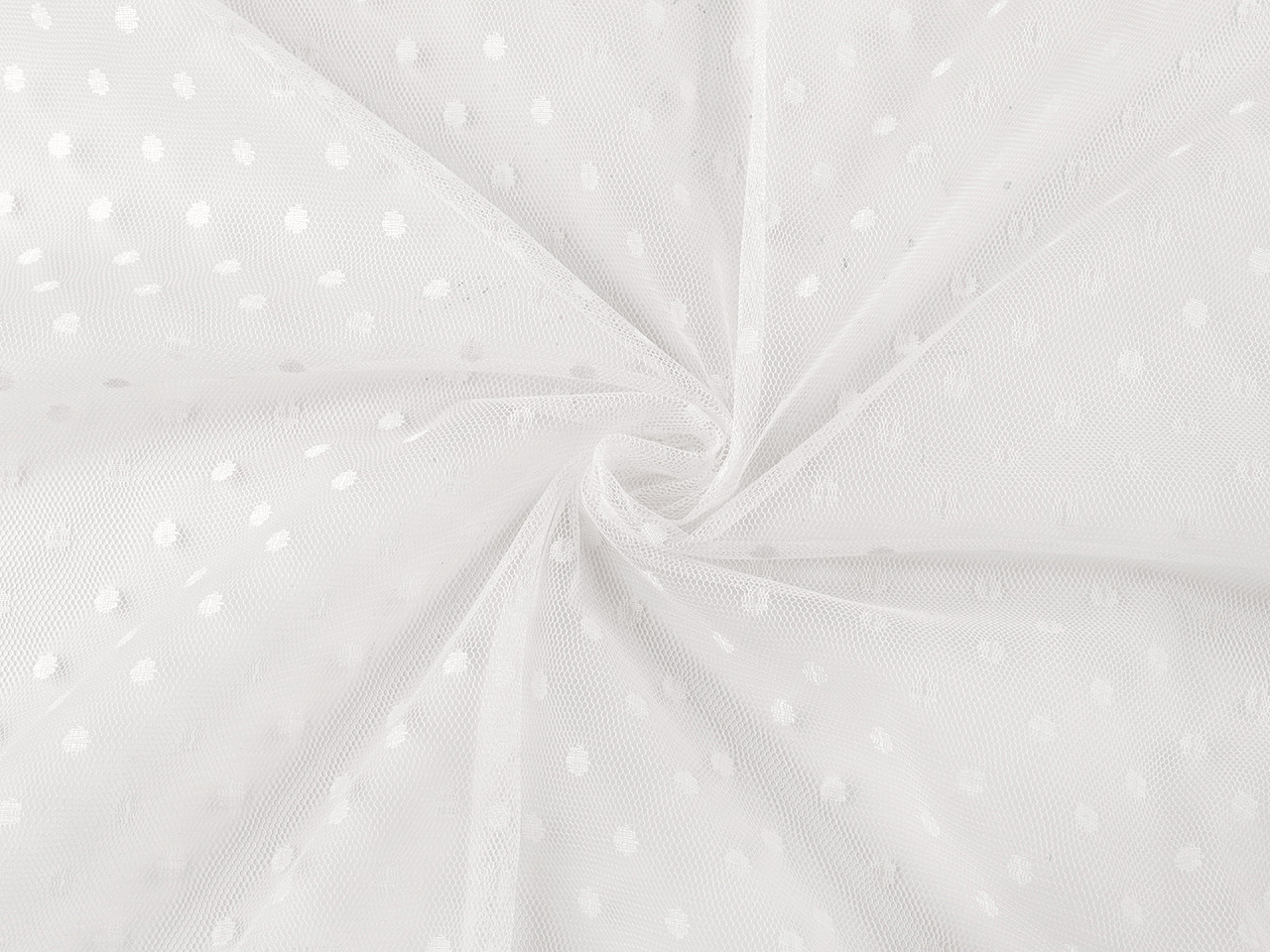 Dodejte svým módním výtvorům šarm s jemně pružným puntíkovaným tylem. Tento materiál je mimořádně lehký, splývavý a díky jemným puntíkům působí originálně a hravě. Tyl se nejvíce pruží po šíři, což oceníte při šití šatů, sukní, halenek, bolerek, šálů nebo jako vsadku či ozdobný prvek na rukávy. Průměr oka je 1 mm. Je vhodný nejen na oděvy, ale i dekorace. V našem e-shopu najdete i tabulku s potřebnými mírami látek pro různé druhy oděvů a bytového textilu.