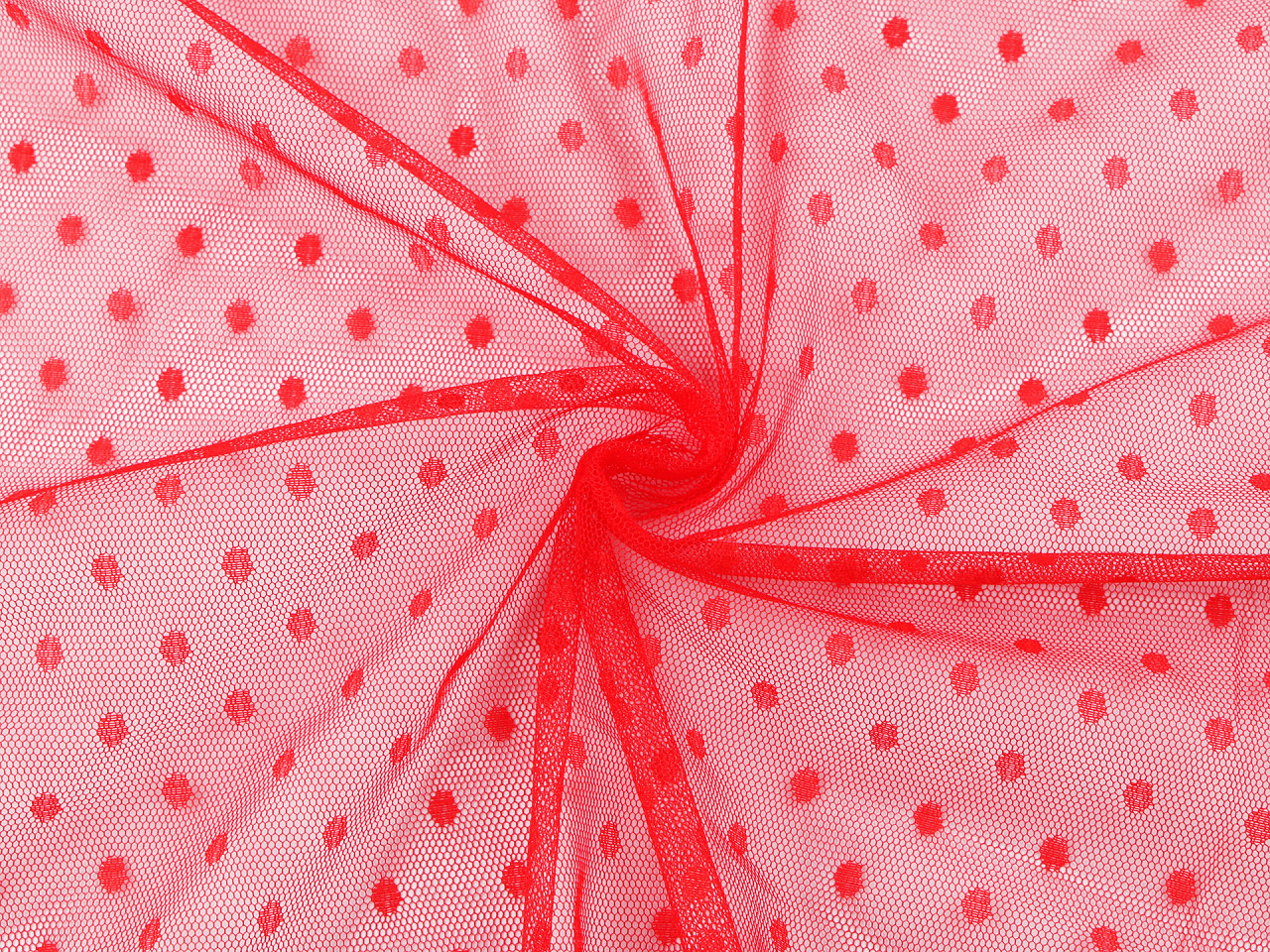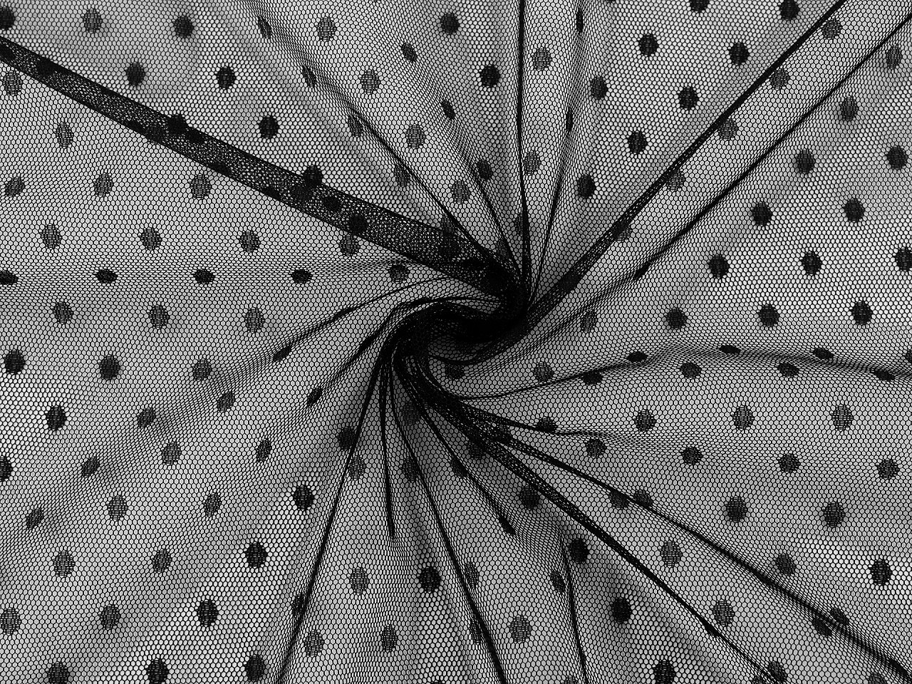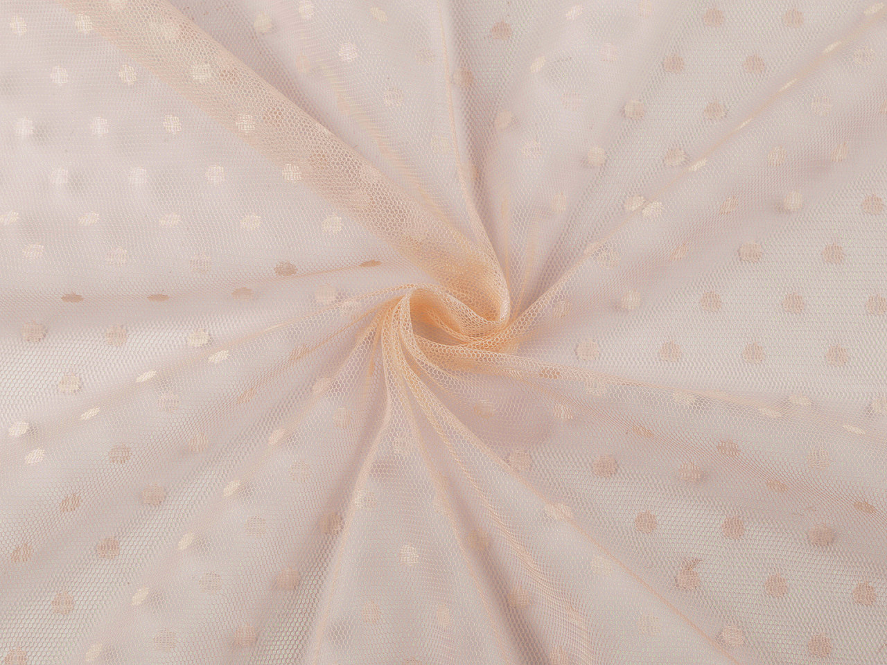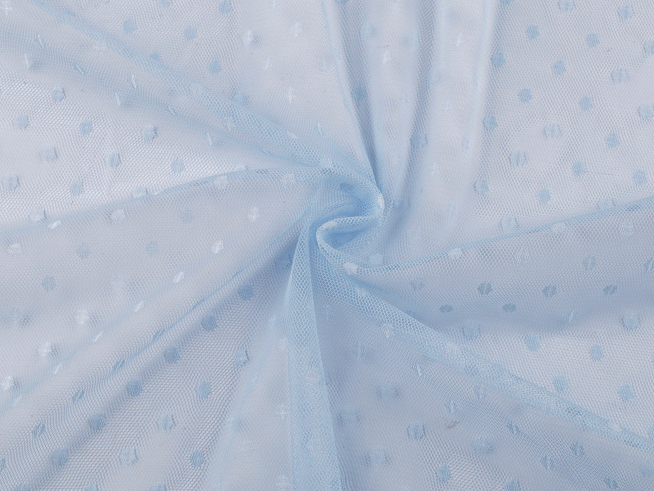 Dodejte svým módním výtvorům šarm s jemně pružným puntíkovaným tylem. Tento materiál je mimořádně lehký, splývavý a díky jemným puntíkům působí originálně a hravě. Tyl se nejvíce pruží po šíři, což oceníte při šití šatů, sukní, halenek, bolerek, šálů nebo jako vsadku či ozdobný prvek na rukávy. Průměr oka je 1 mm. Je vhodný nejen na oděvy, ale i dekorace. V našem e-shopu najdete i tabulku s potřebnými mírami látek pro různé druhy oděvů a bytového textilu.