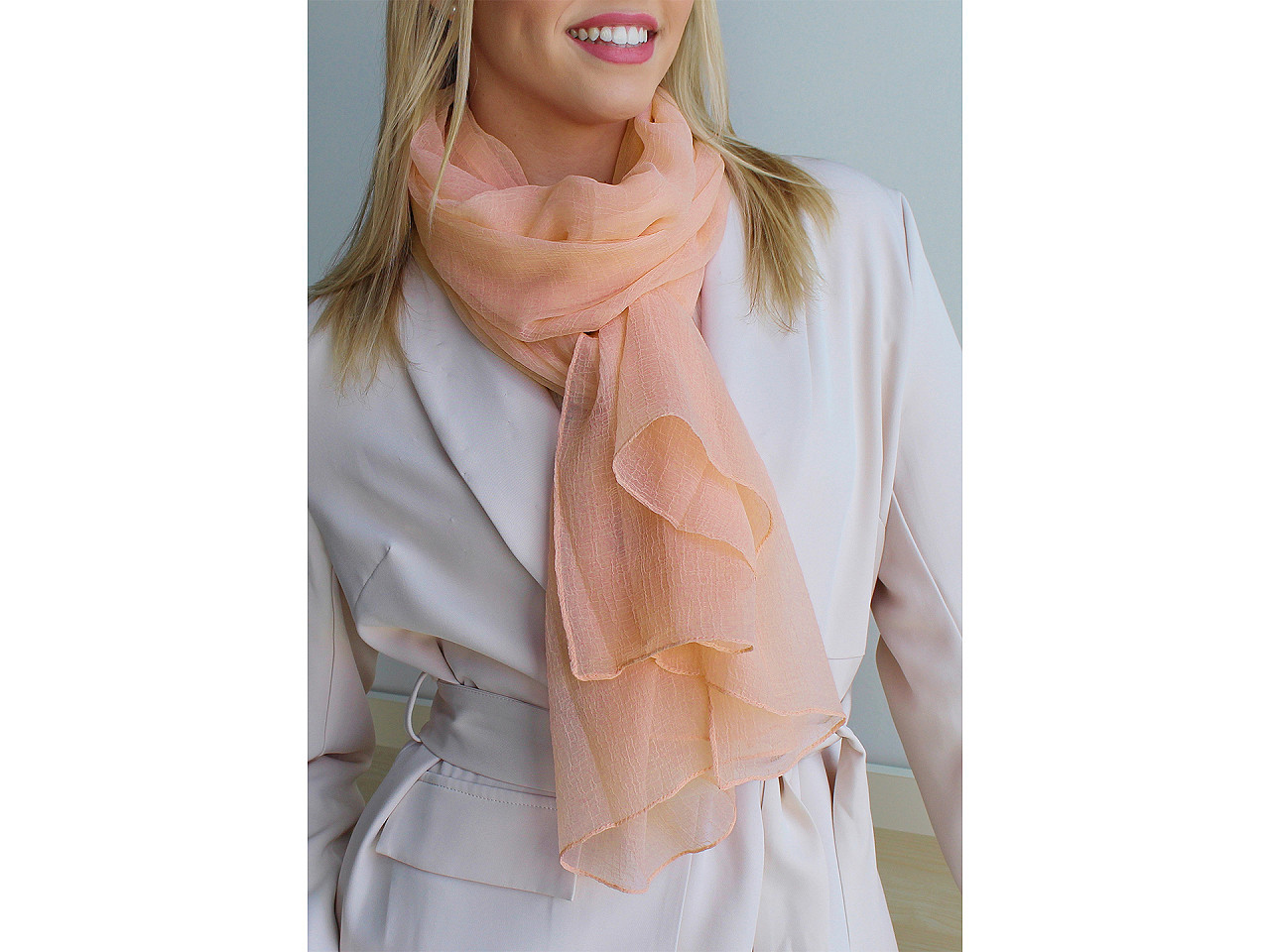 Tento jemný letní šátek je lehounký, velmi příjemný na dotek a má elegantní jemně pomačkanou strukturu. Díky průsvitnému materiálu jej využijete na mnoho způsobů – jako stylový doplněk k plážovému outfitu, kolem krku nebo jako lehký přehoz přes ramena. Jeho všestrannost oceníte při cestování, procházkách po pláži i při večerním posezení s přáteli. Šátek je vyroben z polyesteru, což zajišťuje snadnou údržbu a dlouhou životnost. Upřesňujeme, že složení produktu je polyester – štítek může obsahovat chybnou informaci. Děkujeme za pochopení.