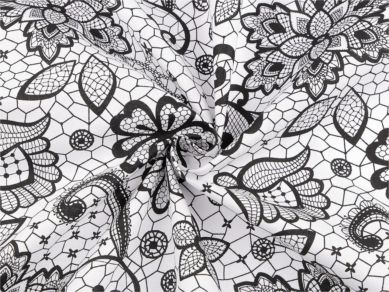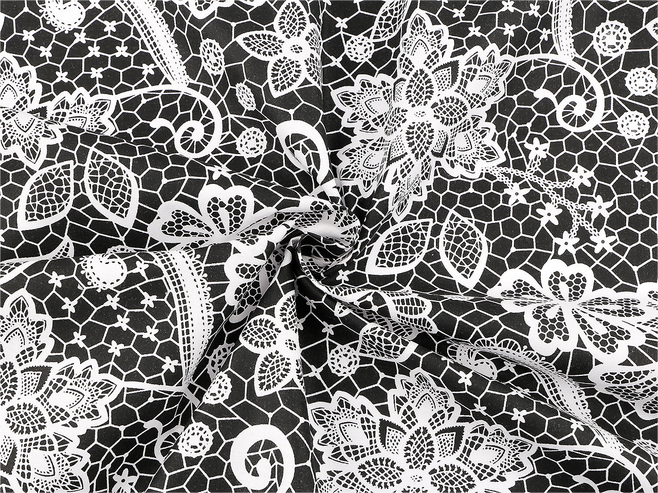 Objevte jedinečnou bavlněnou látku s krajkovým motivem, která se skvěle hodí na šití povlečení, polštářů, pytlíků, závěsů, tašek i dalších doplňků. Černobílý vzor dodá vašemu interiéru kontrast a styl, který snadno zkombinujete s ostatním vybavením. Pro kreativní duše je možné motivy vymalovat barvami či fixy na textil, nebo použít jako předlohu pro vyšívání. Před šitím látku vysrážejte pouze namočením do horké vody, bez chemických prostředků. Potřebné míry látek na šití najdete v přehledné tabulce.