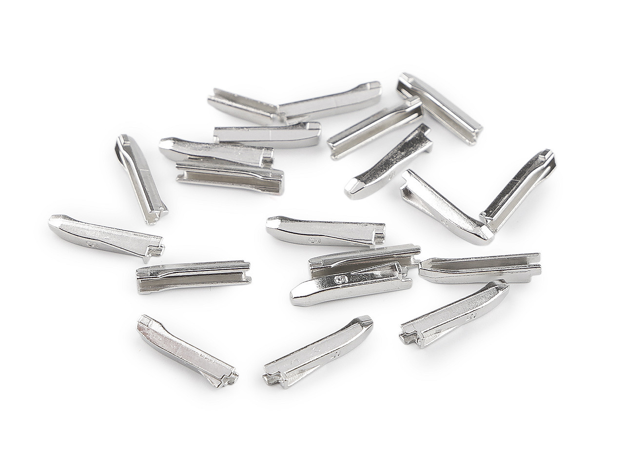 Praktická sada kovových koncovek je ideálním řešením pro rychlou a efektivní opravu kovového dvoucestného zipu No 5 (například typ 144492). Balení obsahuje dva díly, které snadno nasadíte na tkanici zipu a přimáčknete kleštěmi (doporučujeme typy 103328 a 144544). Tím zajistíte pevné ukončení zipu a prodloužíte jeho životnost. Pro ještě lepší výsledek doporučujeme před aplikací zpevnit tkanici zipu vteřinovým lepidlem. Výhodou tohoto produktu je jednoduchá instalace, pevnost a možnost opravit zip bez nutnosti výměny celého jezdce či zipu.